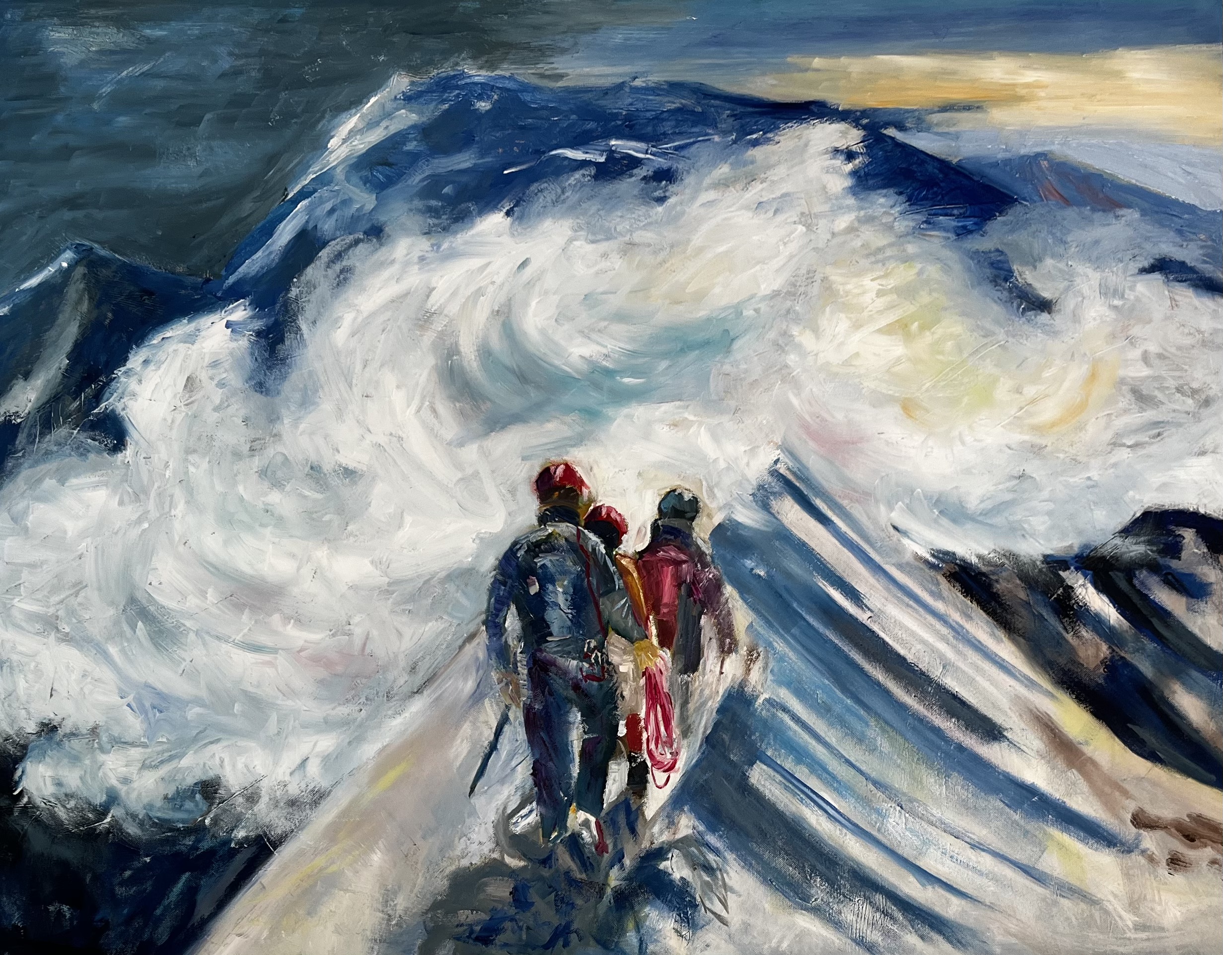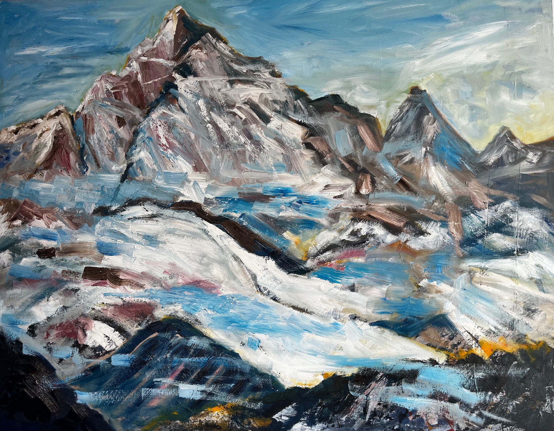 „Ganz oben am Piz Palü!“ Das Bild hat sich am Ende etwas selbst gemalt. Keilrahmen, Öl, 80 x 100 cm.