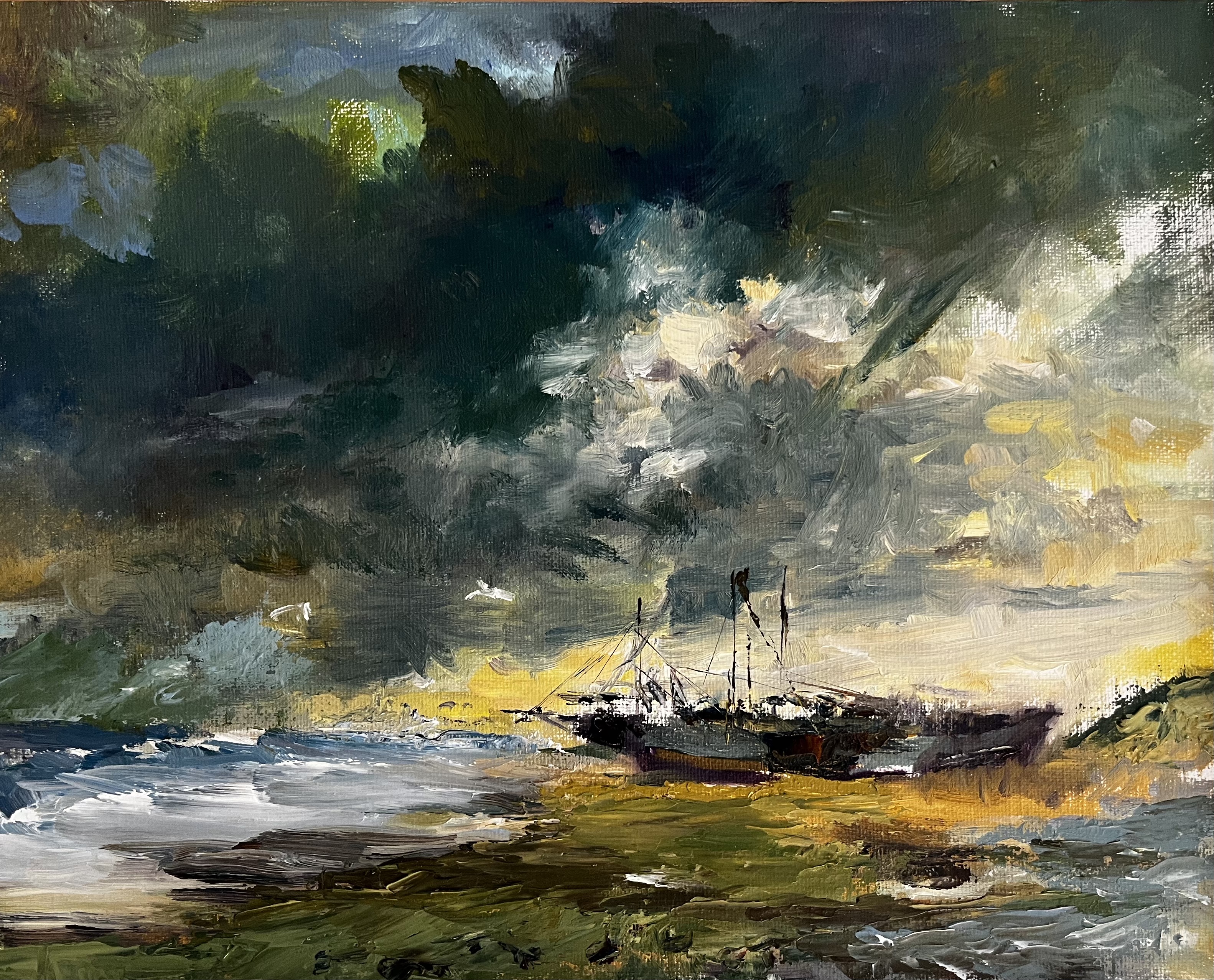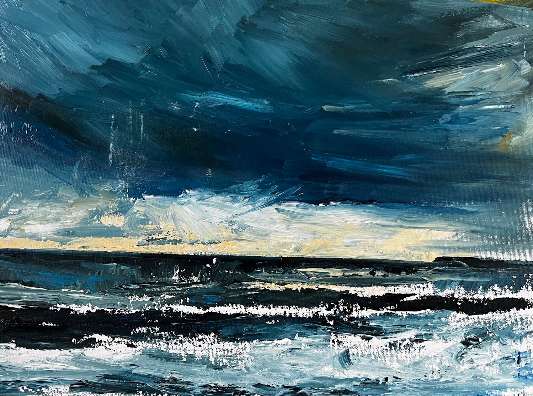 „The storm is comming! This oilpainting is available, 30x30 cm“.