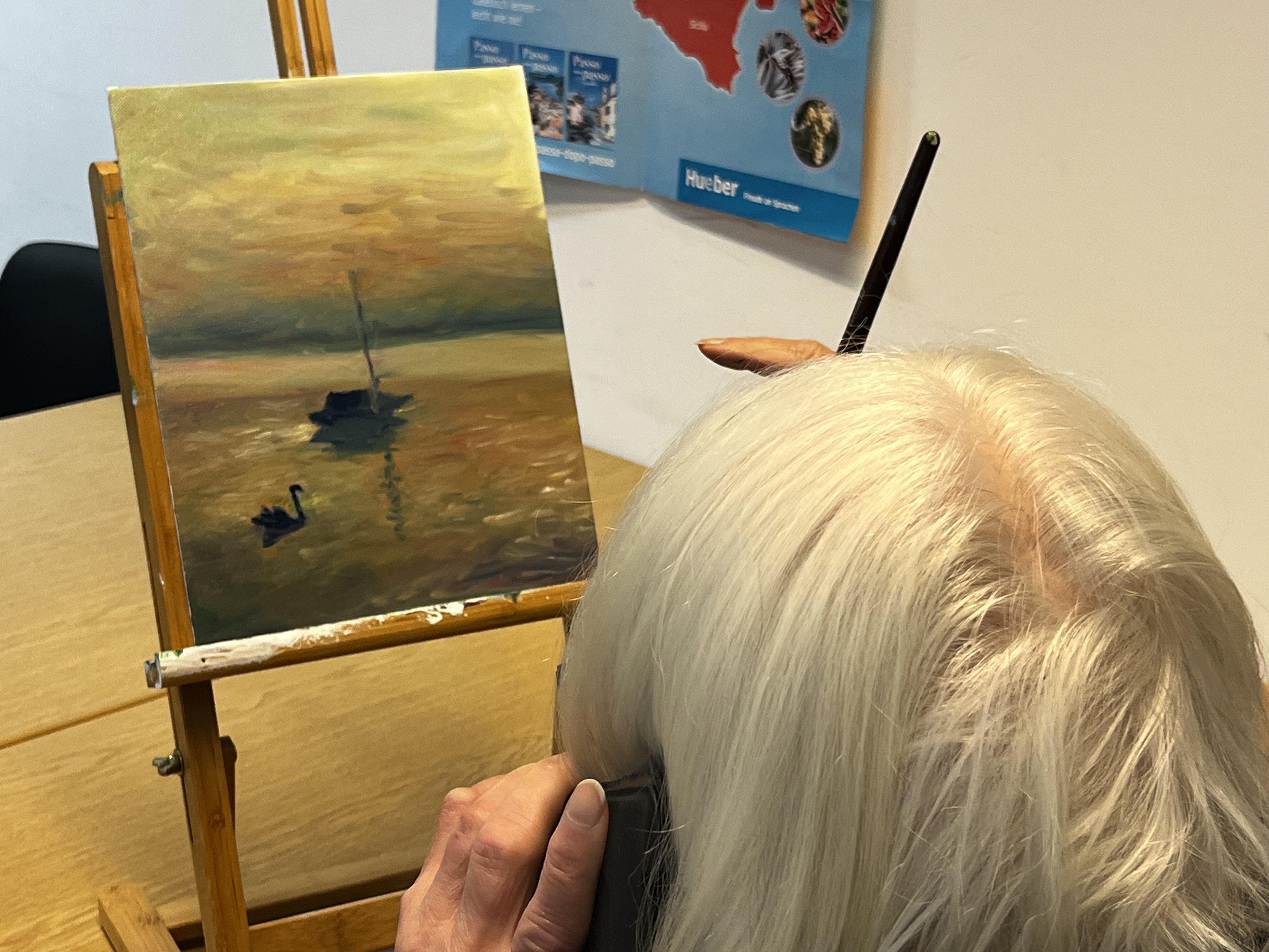 Hier ein paar Eindrücke von den Ölmal-Terminen in der VHS Fürstenfeldbruck. Sie sehen hier die Ergebnisse eines Tages. Die Teilnehmer hatten keine Vorkenntnisse. Es wurden sehr gute Arbeiten produziert. Weiter so!