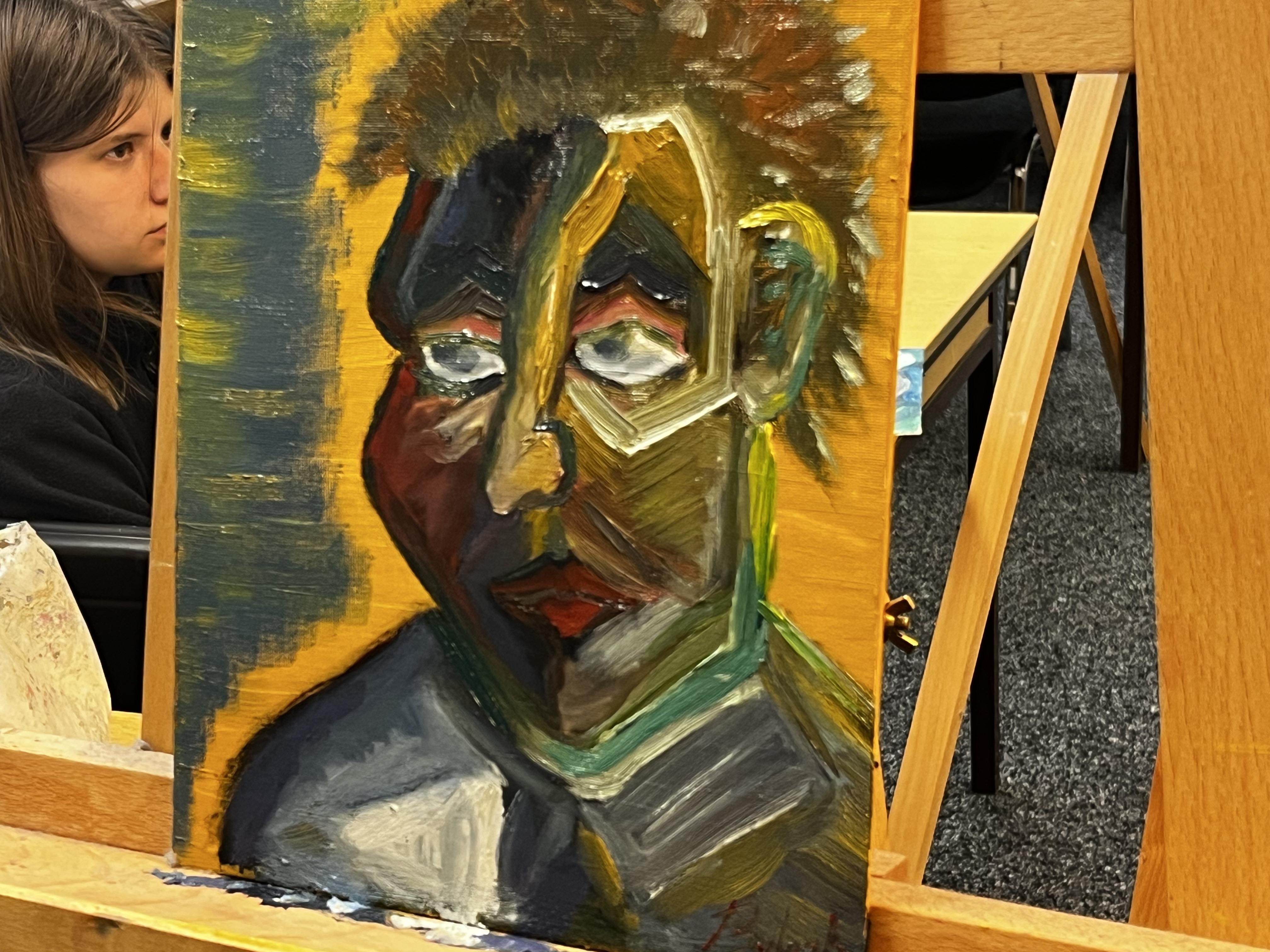 „There are some autumn colors in the background. This is an oilpainting of myself (30x30 cm). Unverkäuflich!“.