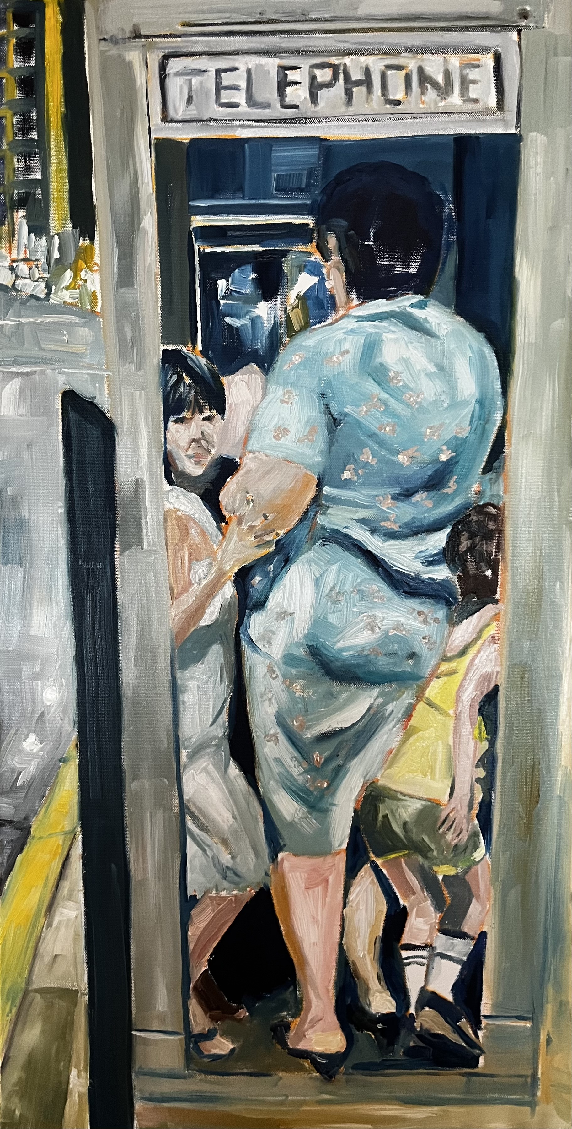 „Taxi is waiting! Teilansicht eines Bilds von Mike Keilbach. Unverkäuflich. 24x30 cm. Öl, Malpappe“.