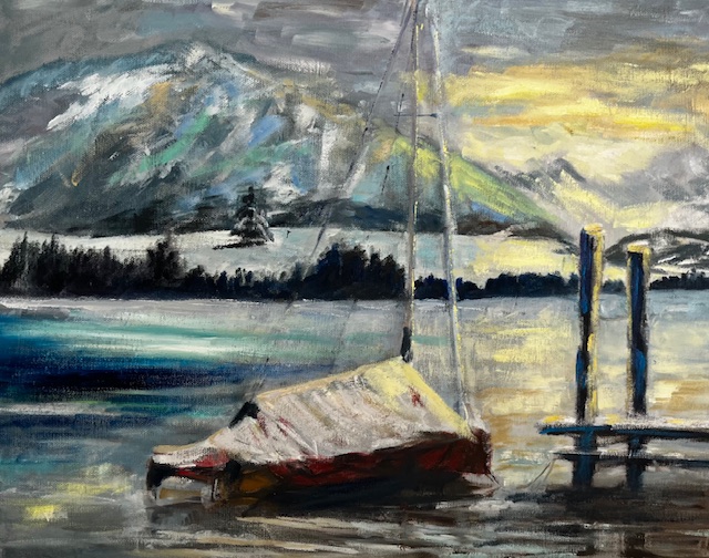 „This is an oilpainting by myself. It is an impression of the lake Starnberger See in Bavaria. This picture is called “GemeinsamKiten““.