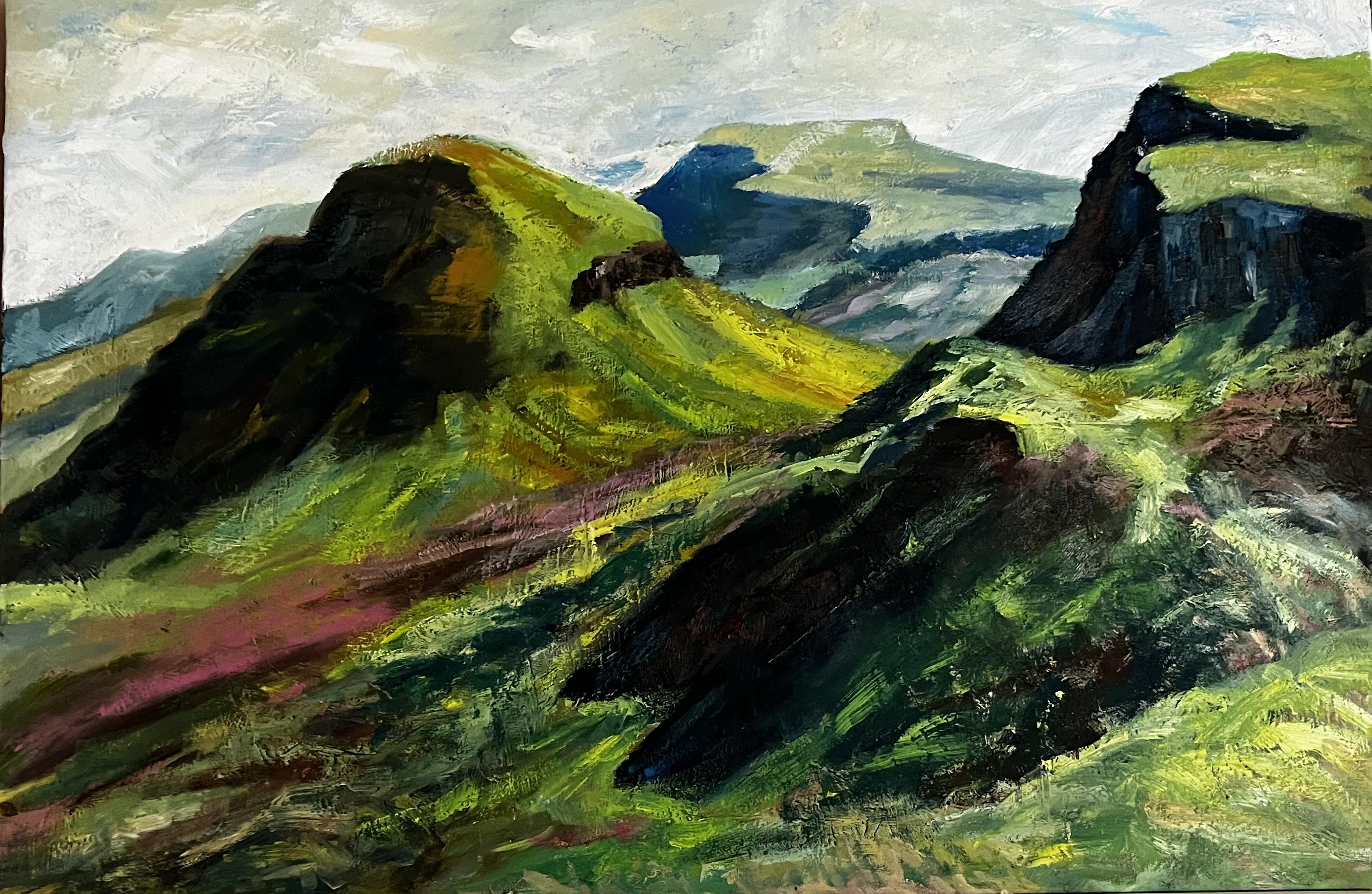 Hier eine Ansicht von Loch Ness in Schottland, von oben aus. 24 x 30 cm. Der nächste Ölmal-Termin ist am Sonntag, den 26.1.2025 in der VHS Fürstenfeldbruck von 10 - 16 Uhr. Es sind noch Plätze frei. Sie können online reservieren.