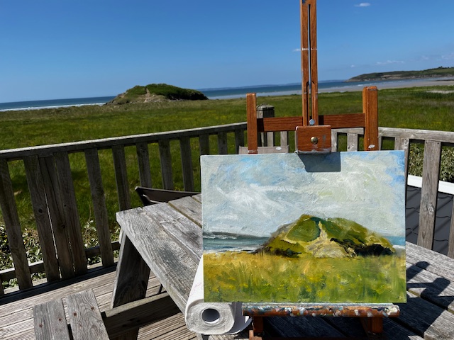 „Nacharbeiten des Bretagneurlaubs Pfingsten 2023, Auf dem Weg zum Meer bei Saint Anne Lapalud Öl, 30 x 40 cm, Malplatte."
