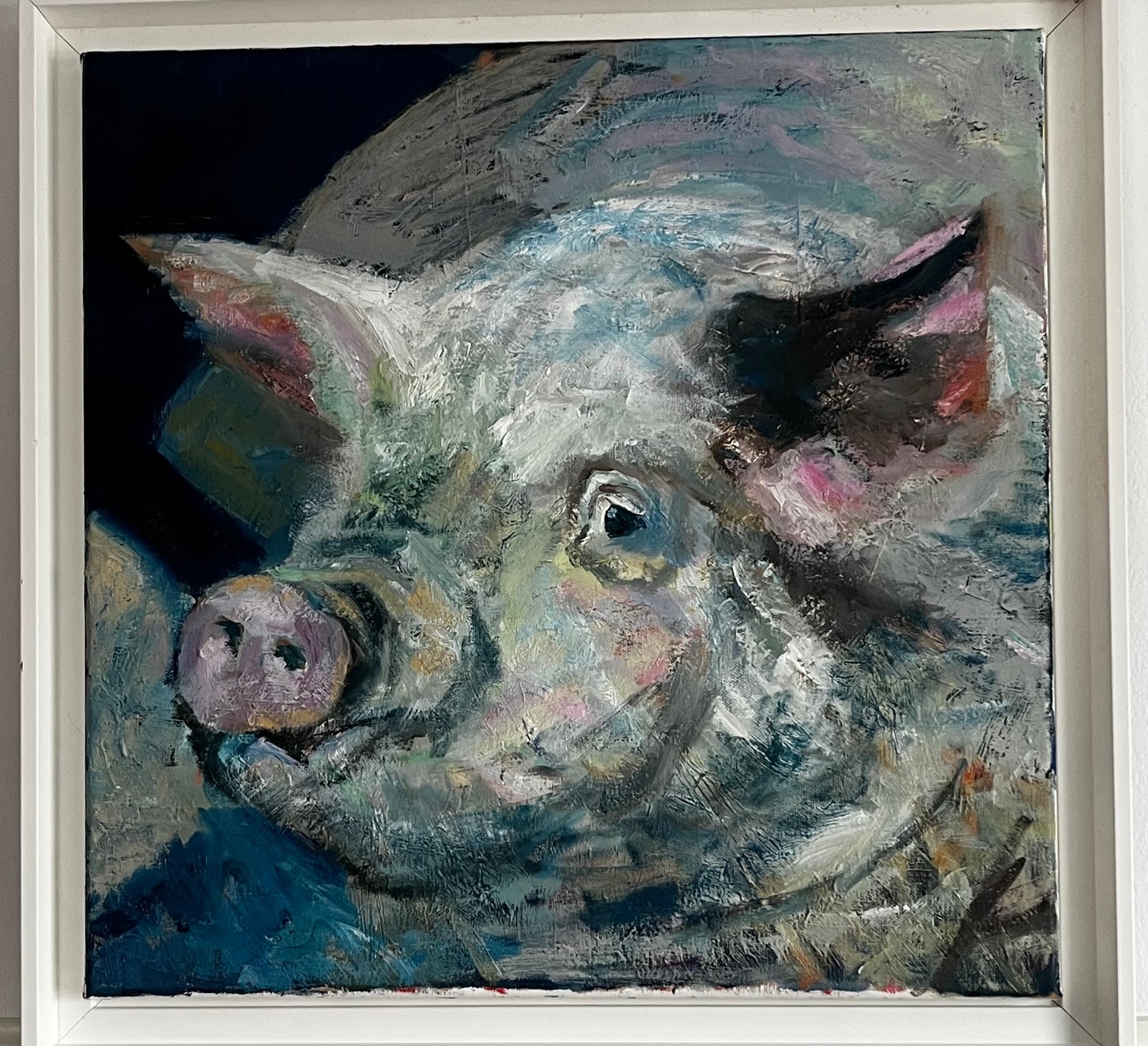 A friendly pig! Öl auf Keilrahmen, 40 x 40 cm.