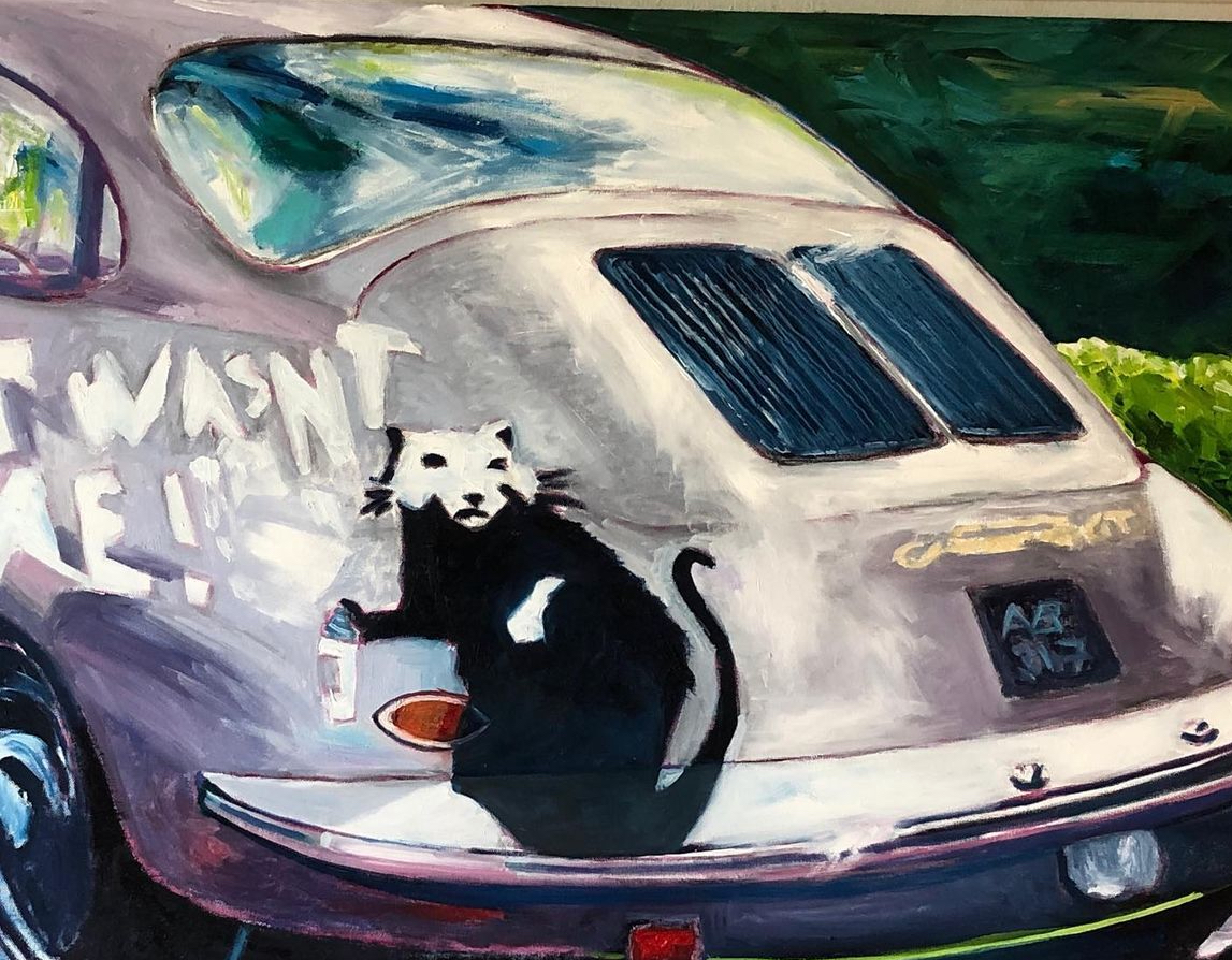 „It wasn‘t me“ Hommage an Banksy, Öl, 50x60 cm.“.