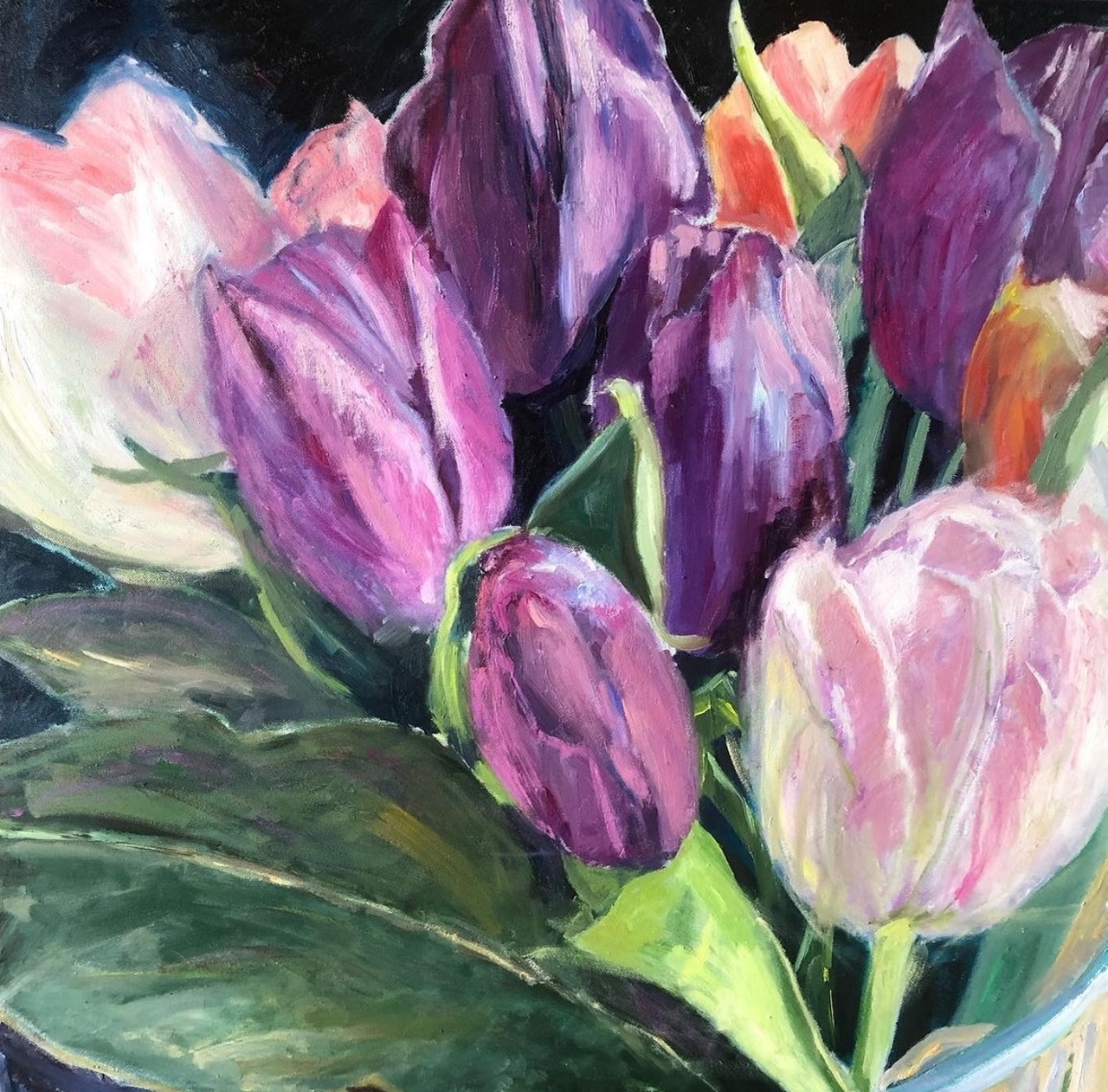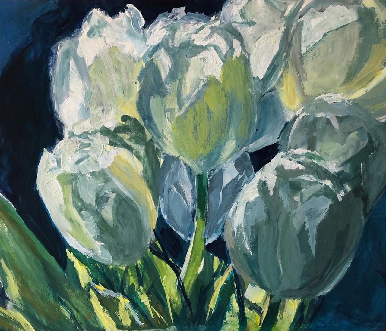 „Weiße Tulpen aus Gouache, 30x40 cm“.