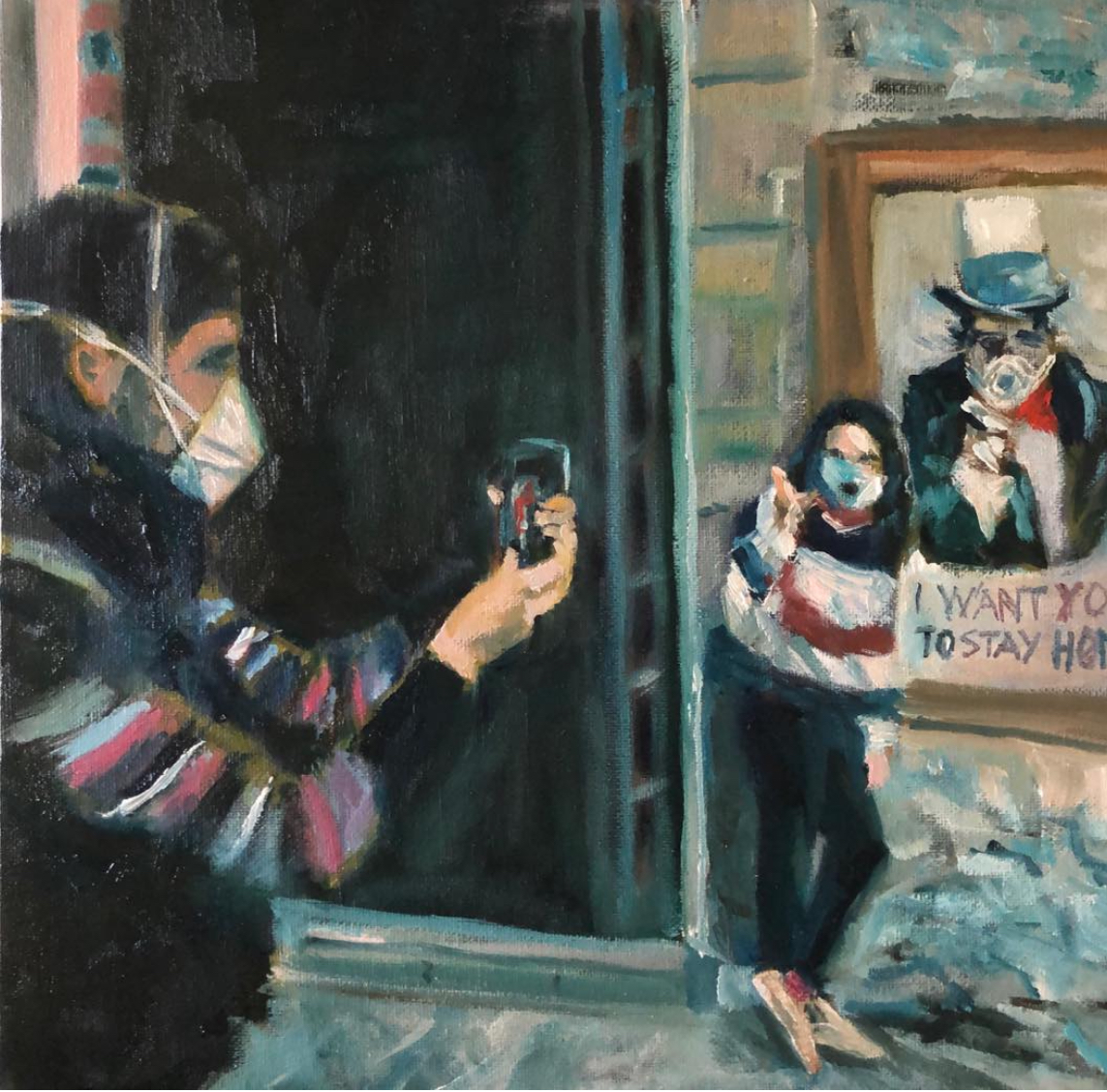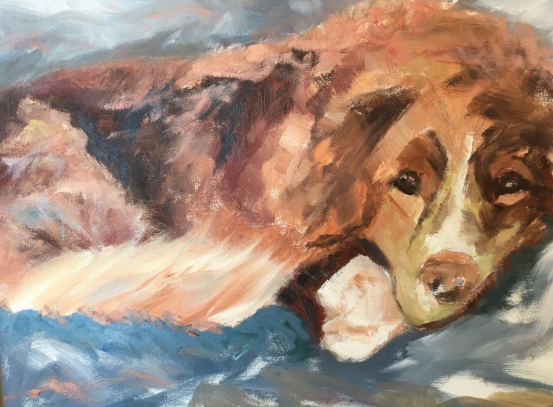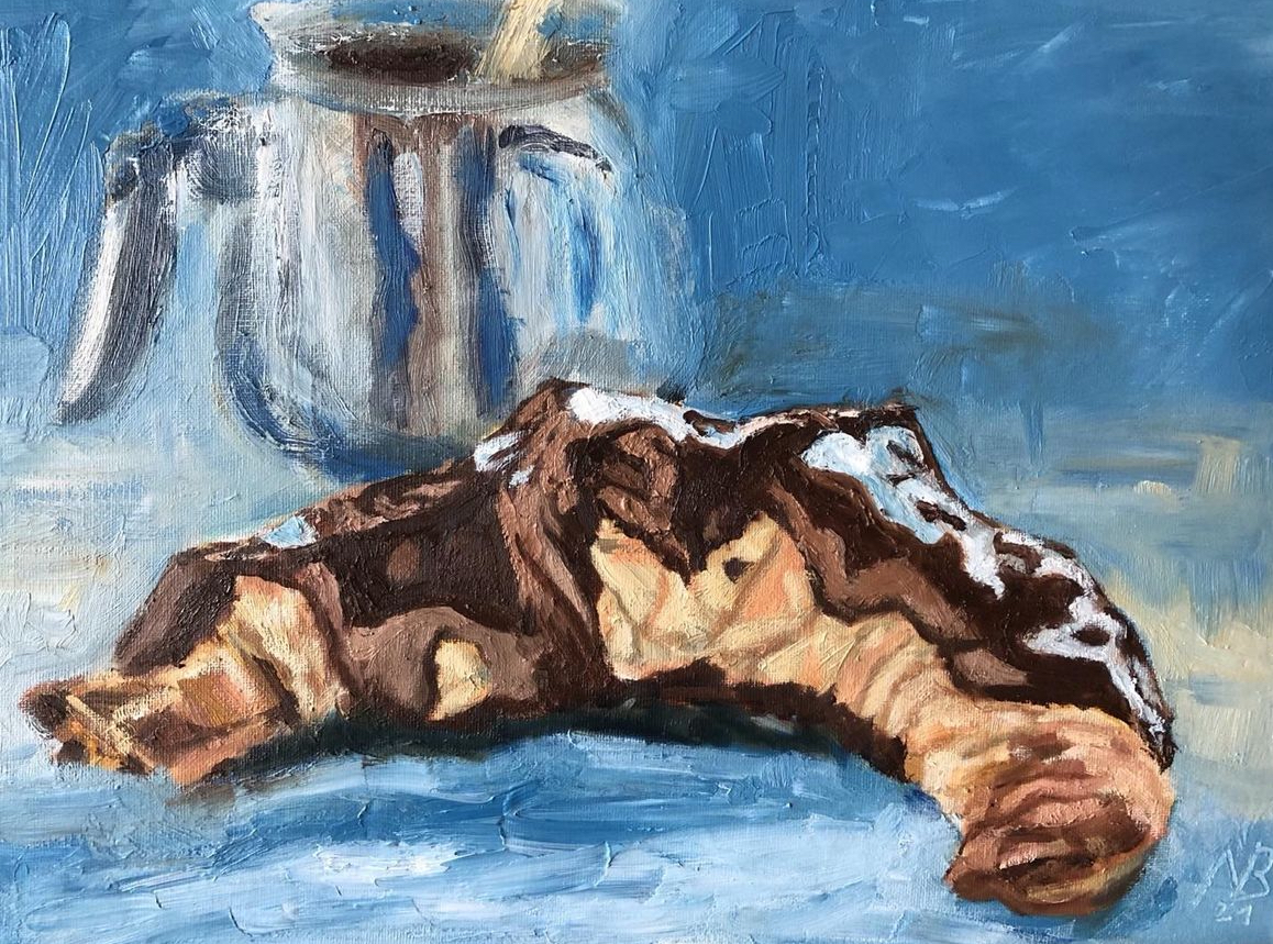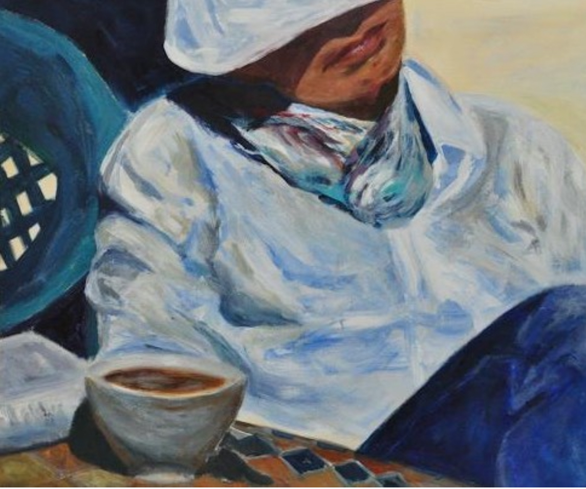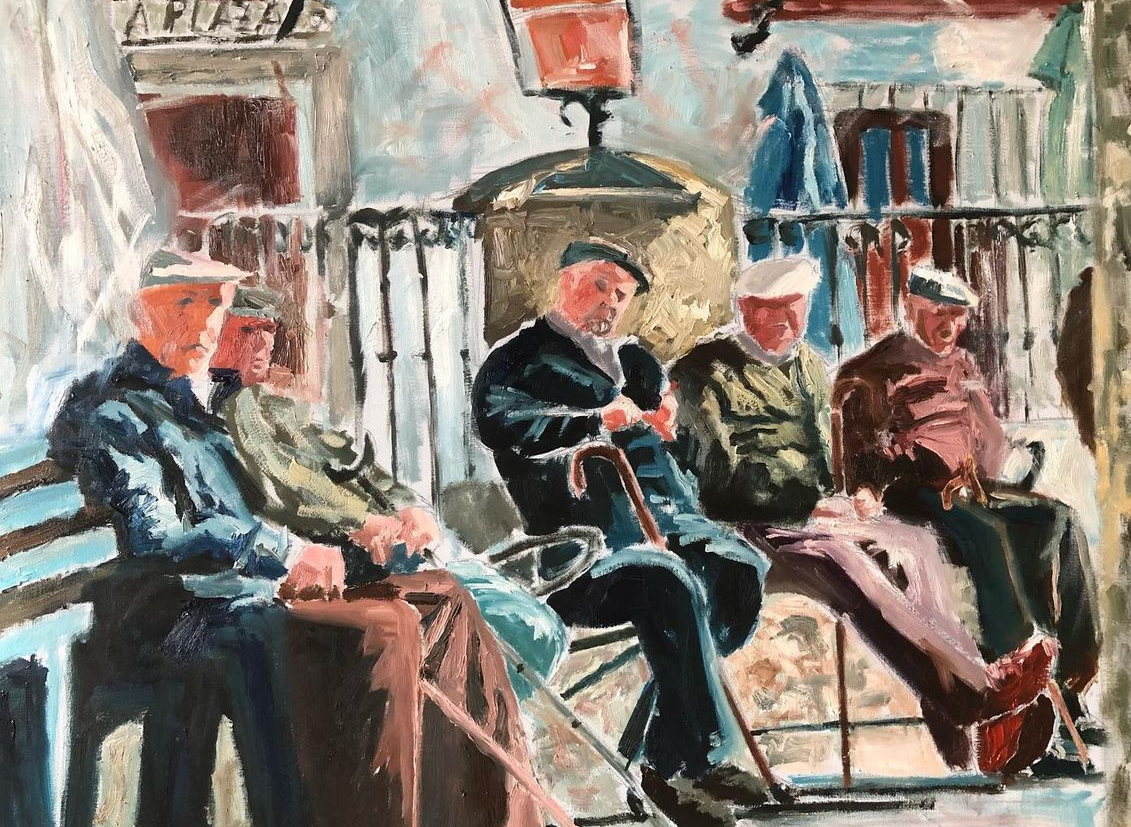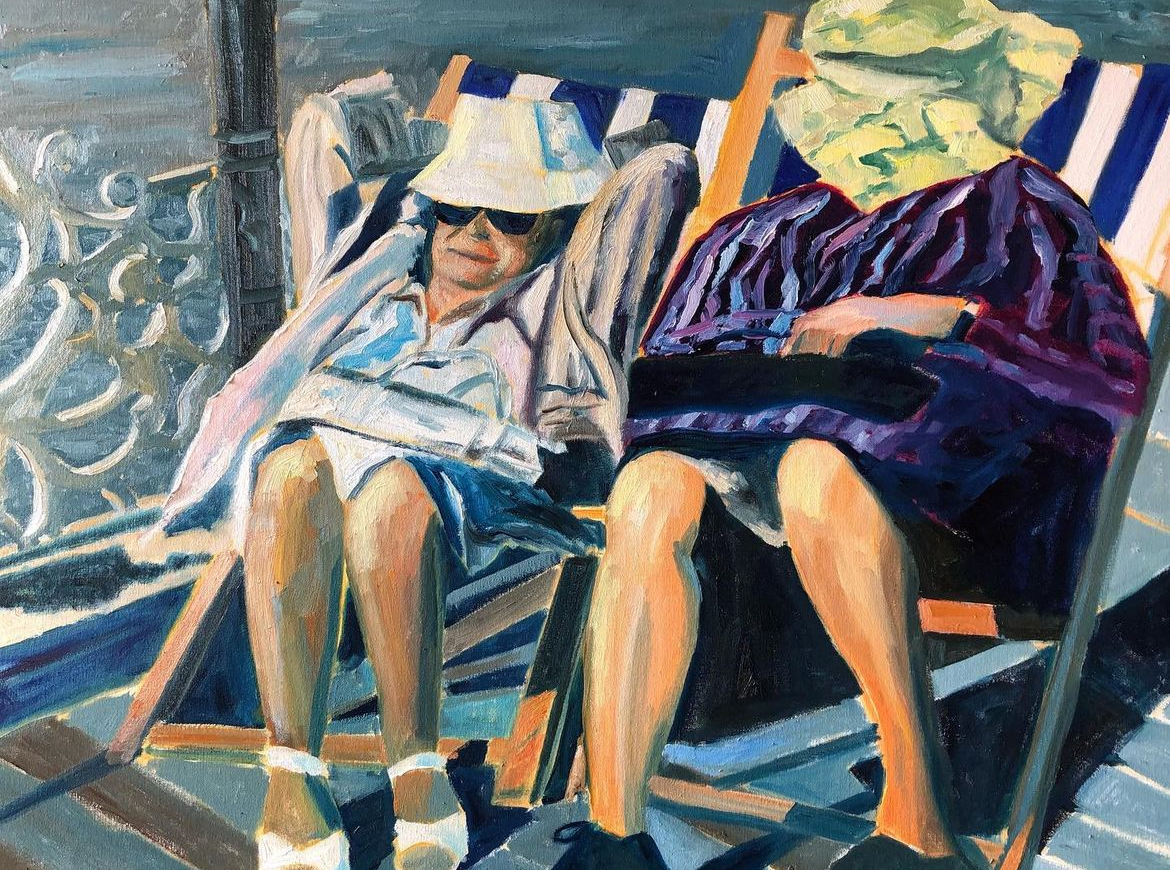 Titel von mir: „Take a break“, 30x40 cm, Öl, Malpappe“.