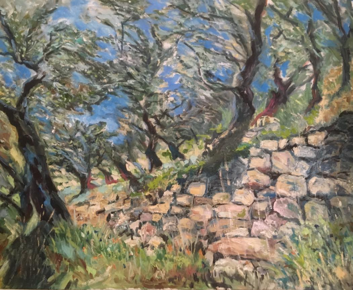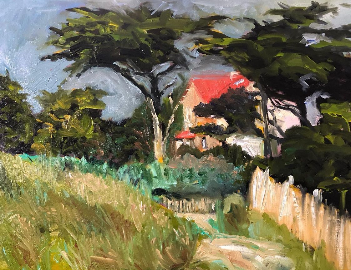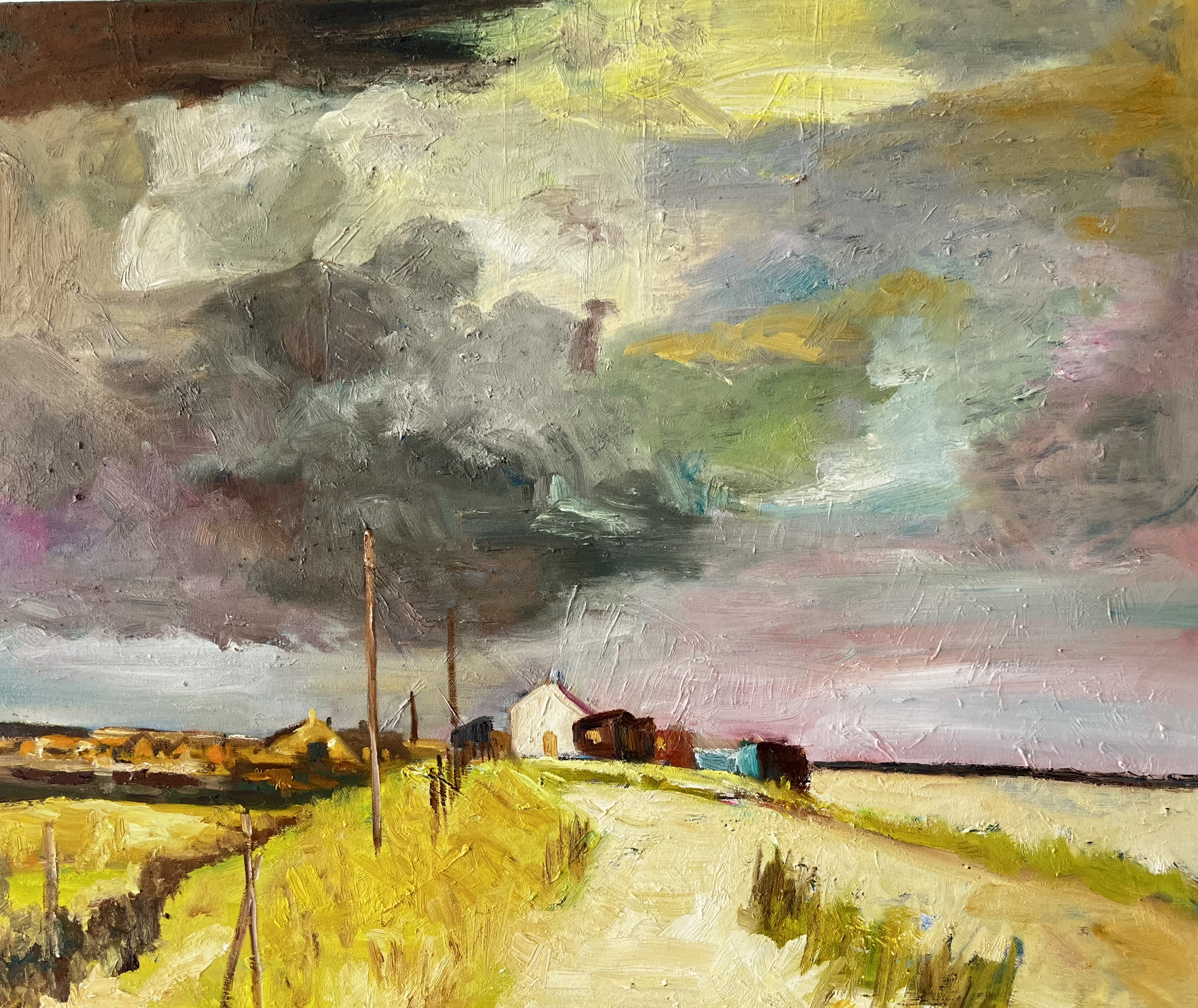 „Nacharbeiten des Bretagneurlaubs Pfingsten 2023, Auf dem Weg zum Meer bei Saint Anne Lapalud Öl, 30 x 40 cm, Malplatte."