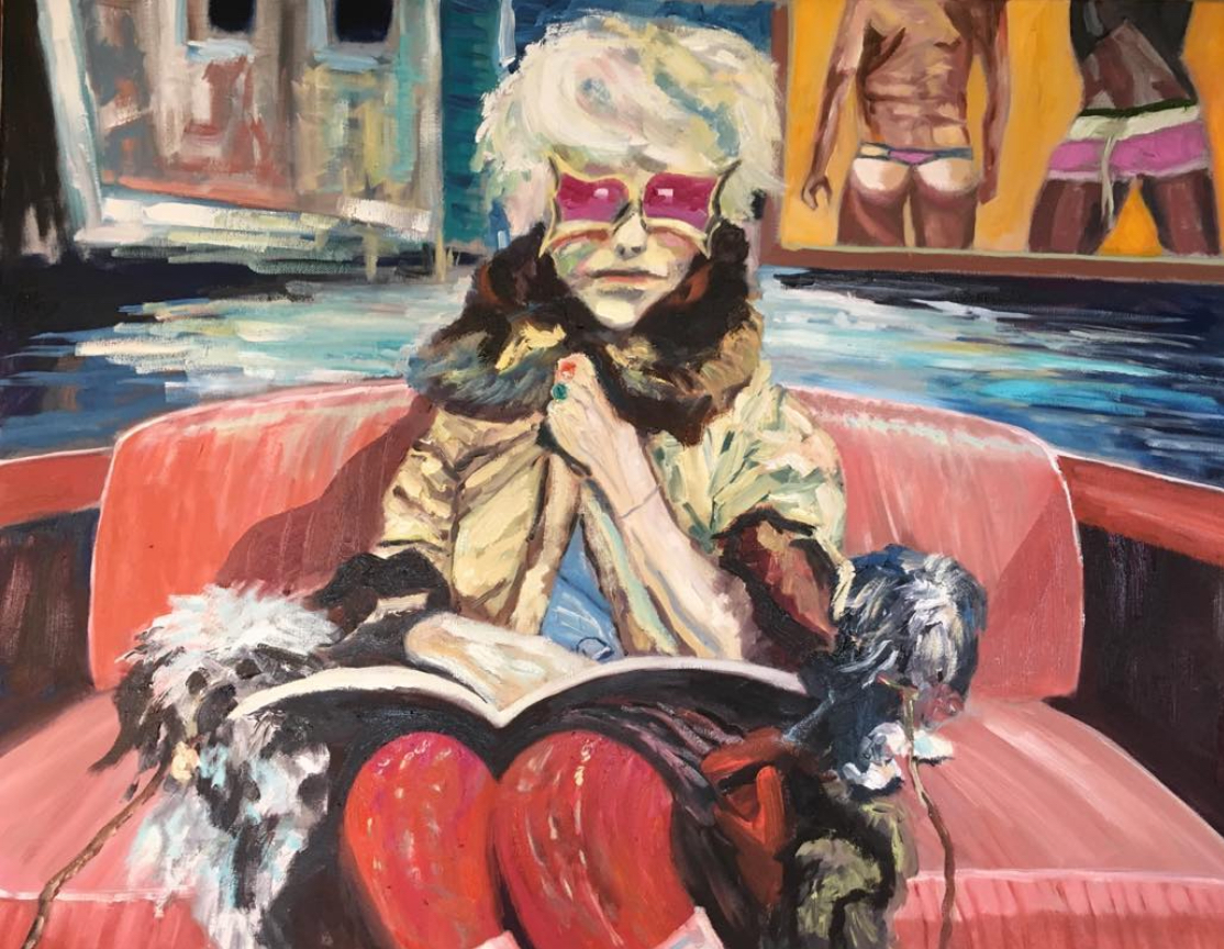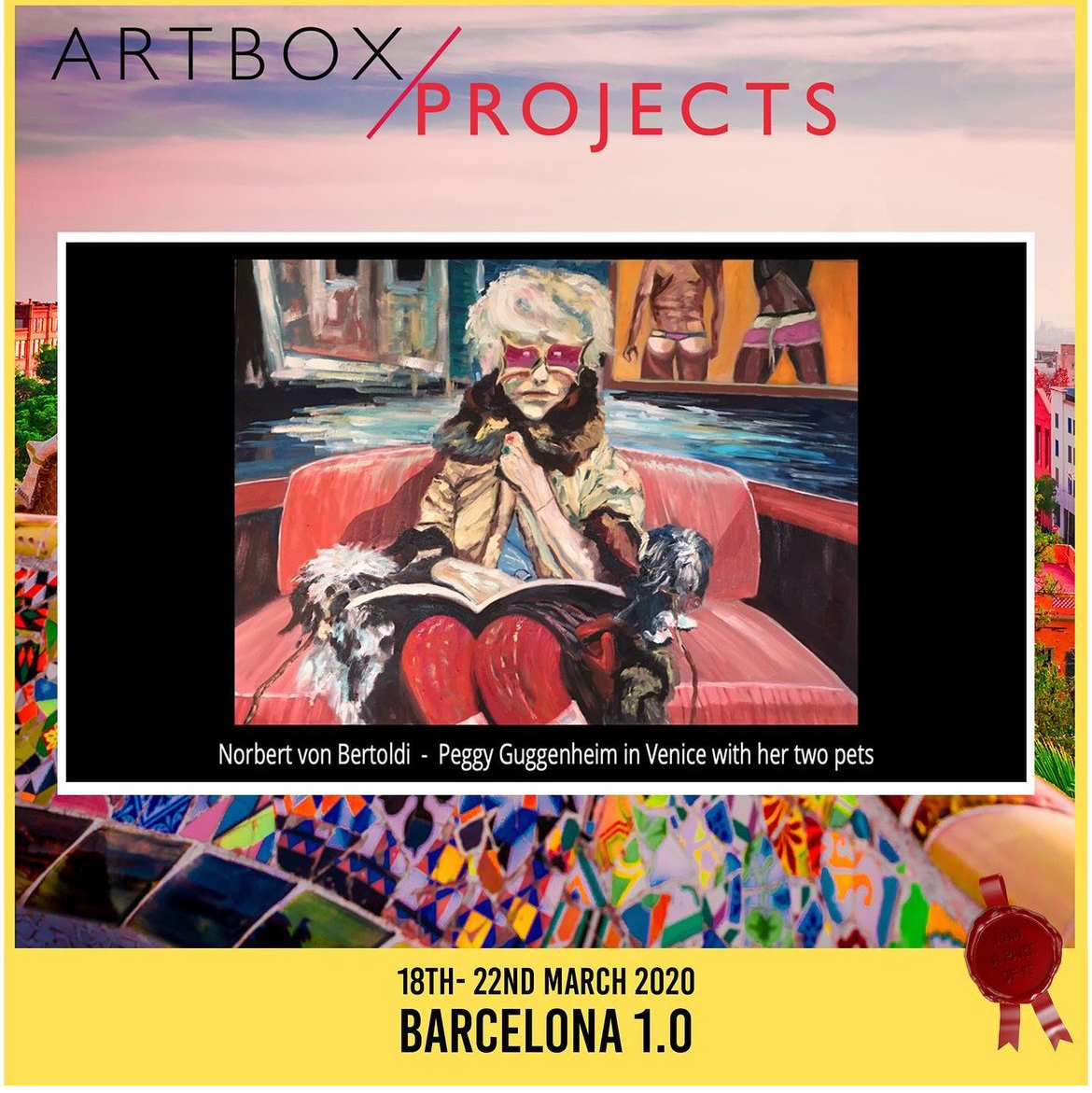 „This is a tribute to Peggy Guggenheim . She is sitting in a boat in Venice with her two pets. The pets are not in the background!“