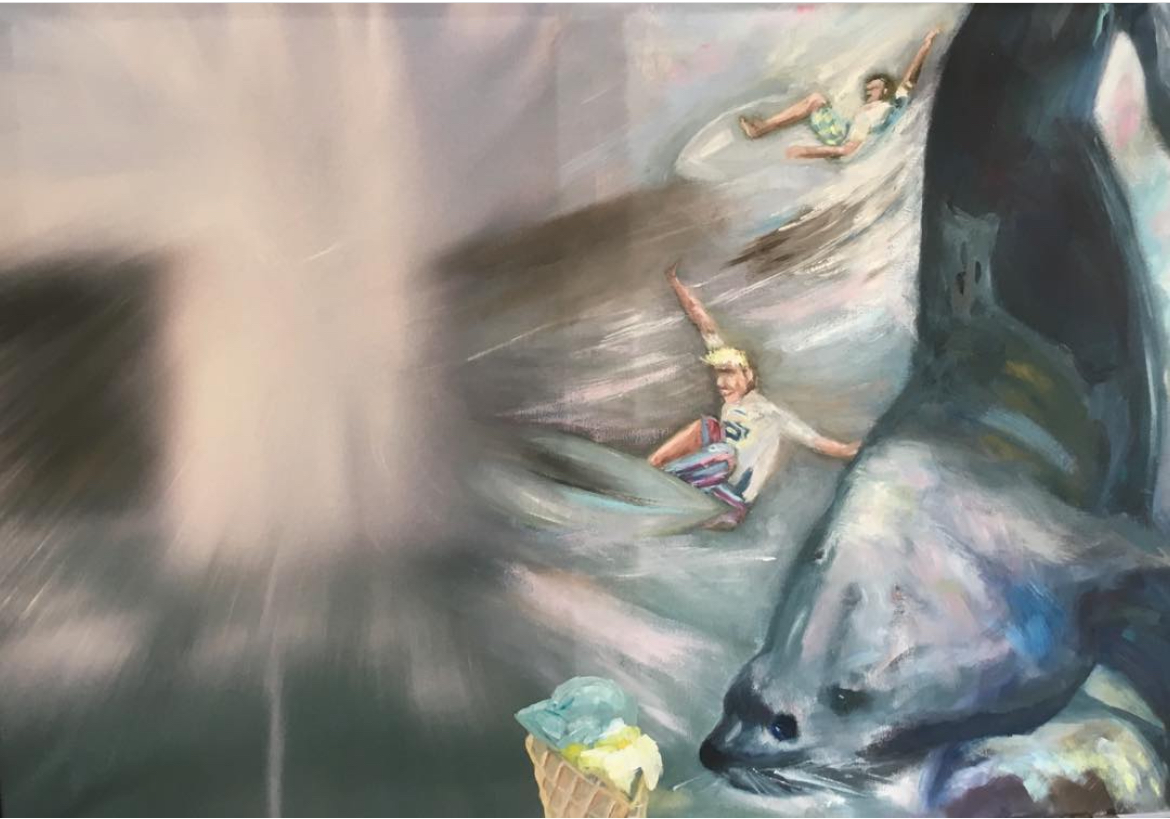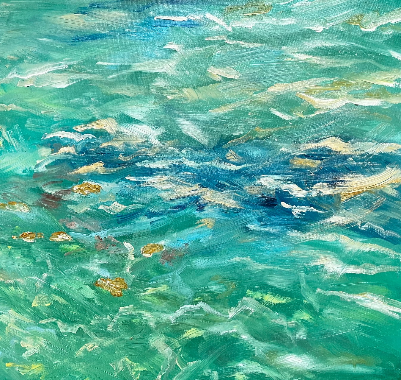 Kleines Meeresstück, Zuerst mit dem Pinsel, dann Shaper und dann wieder mit dem Pinsel. Öl, Keilrahmen, 50 x 50 cm.