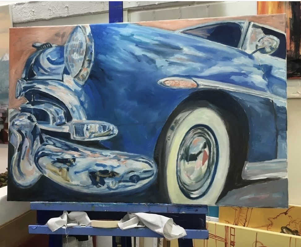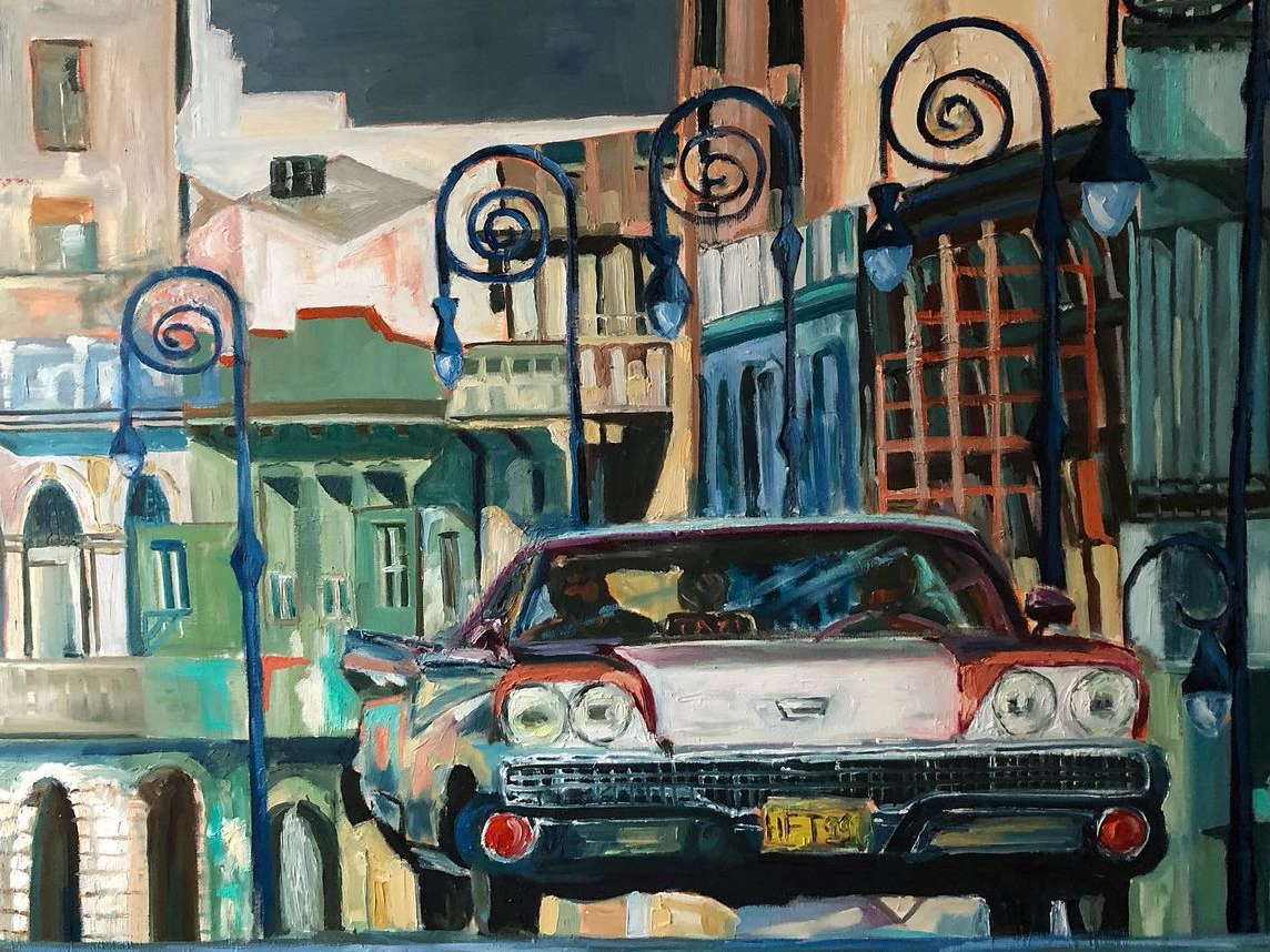 „on the road again“ ist jetzt fertig. Ausflug in Havana. Öl, 100 x 80 cm, Malplatte."