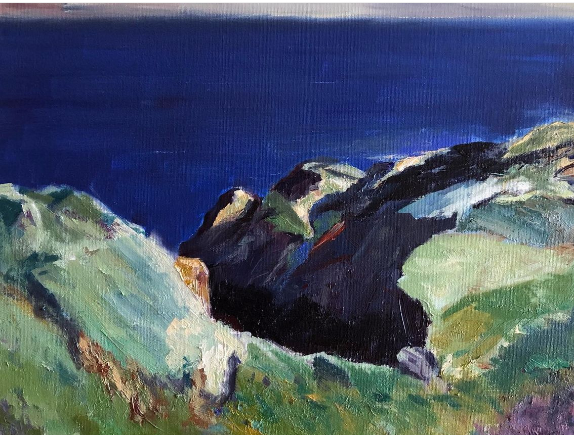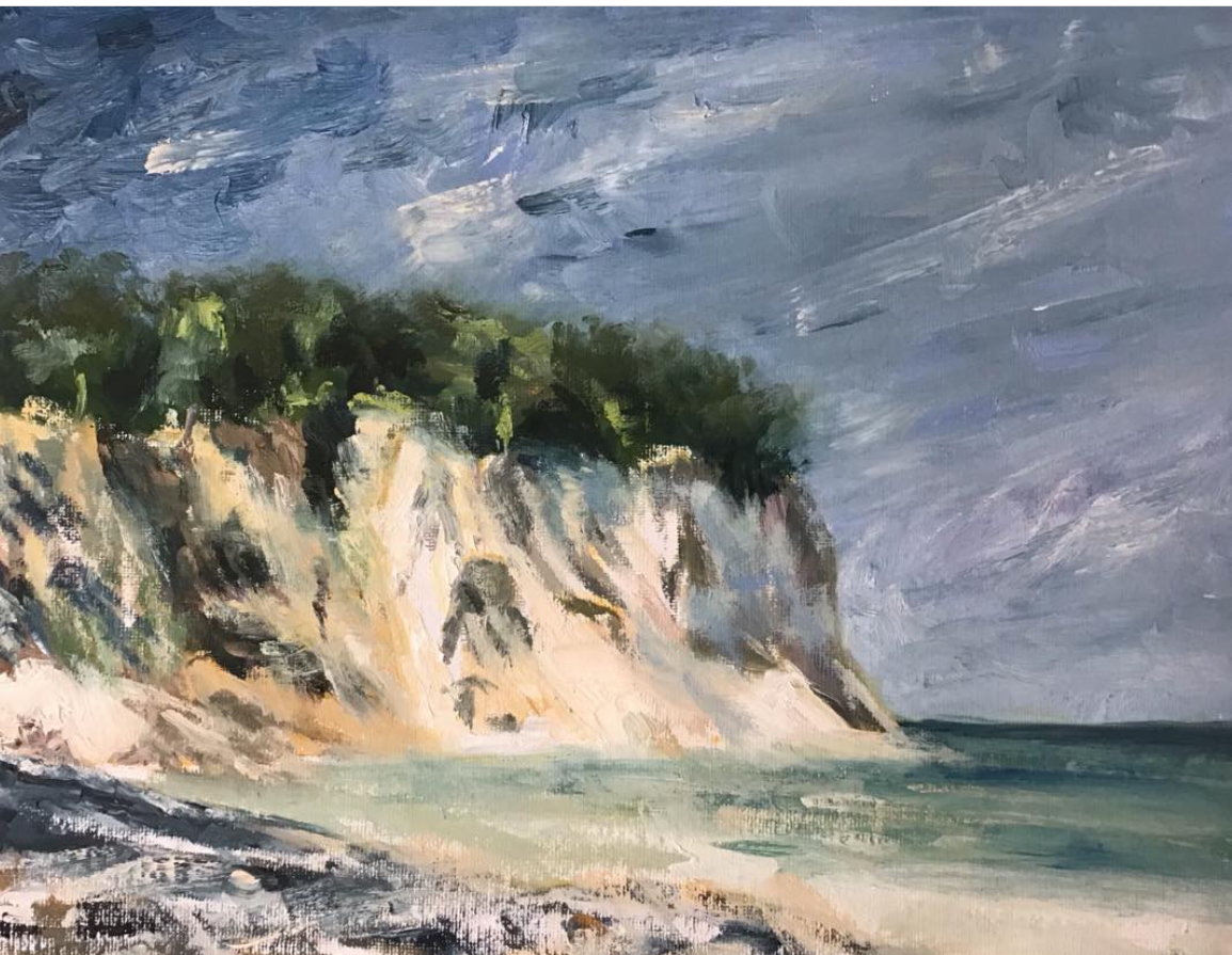 „This is an oilpainting sketch of the isle Ruegen. This isle is in the northern part of Germany. You can see the chalkcliffs“.