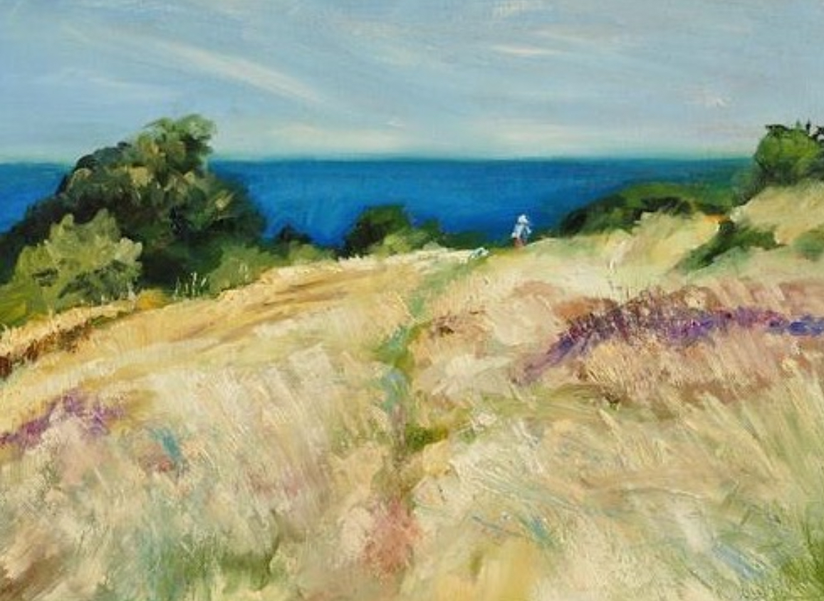 „In this oilpainting you can see a walk through the fields to the sea on Bornholm, a Danish island“.