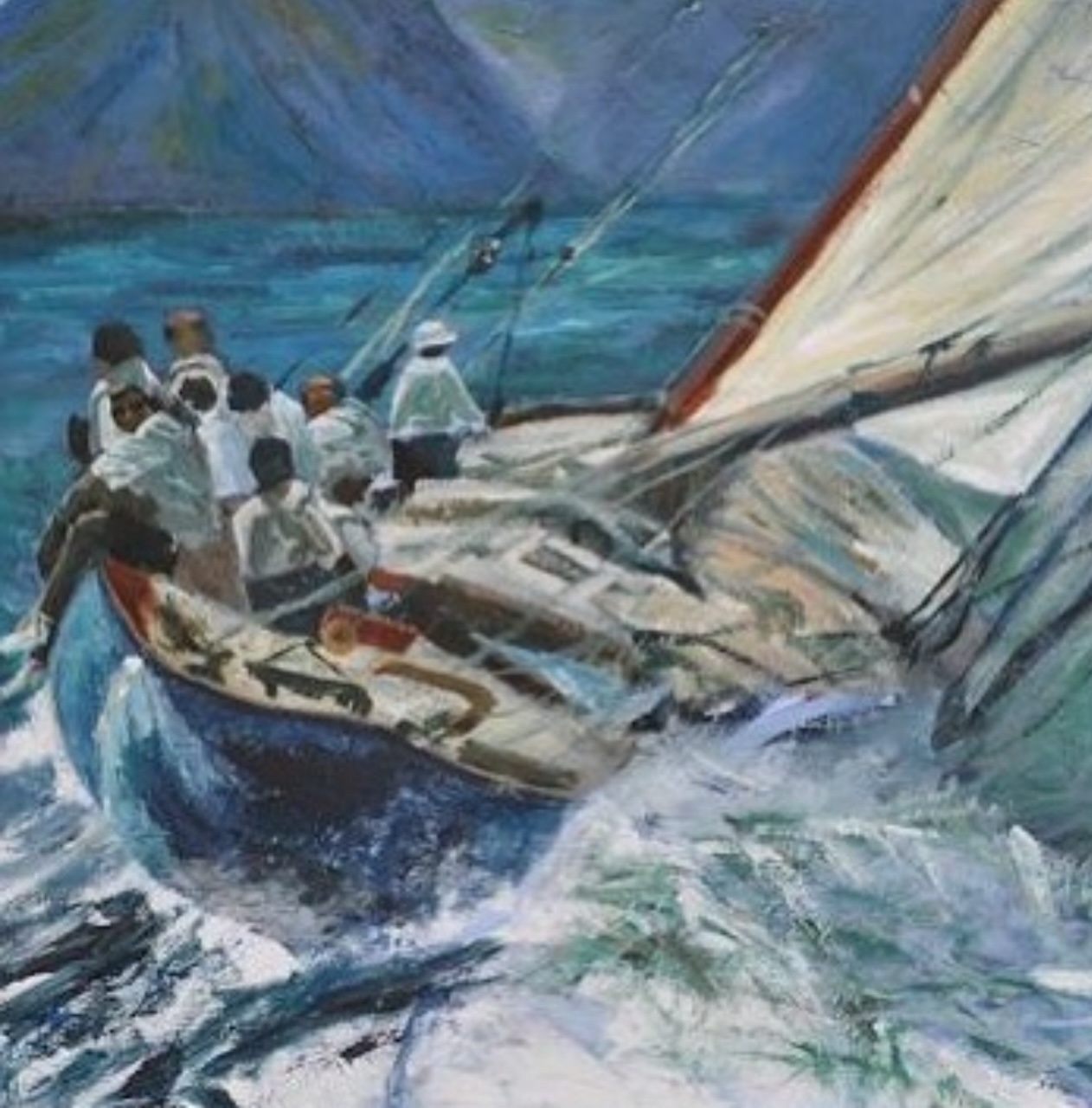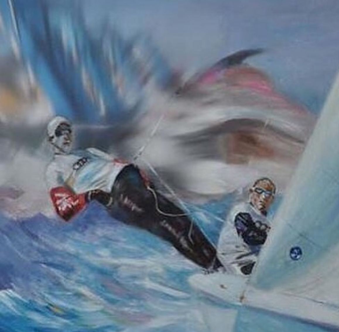 „This work is a combination of a photograph by the artist Temel Nal and an oilpainting by myself. You can see the photograph by Temel Nal in the background of the sailing boat. The foreground with the sailing boat and the water is an #oilpainting by myself.