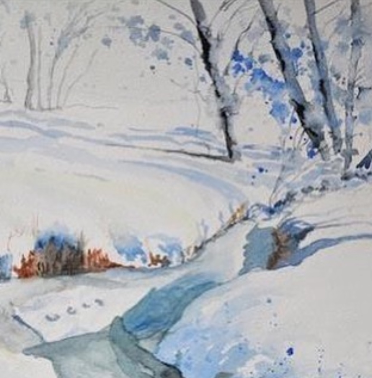 „This watercolor painting is an impression of a small creek anywhere in winter“.