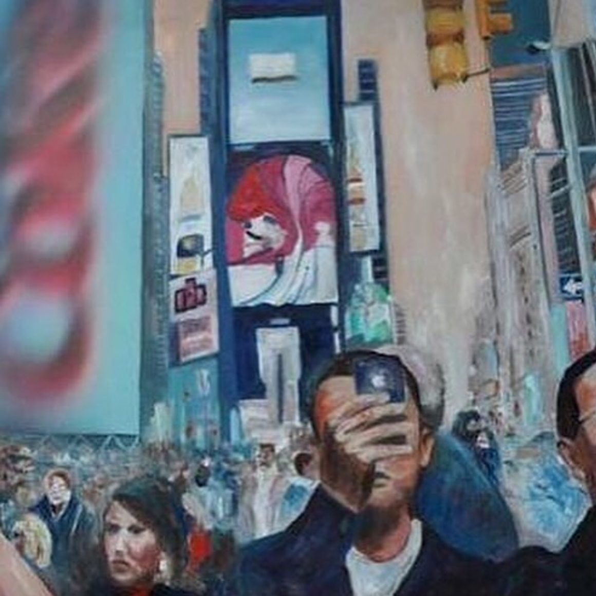 „This work is a combination of a photograph by the photographer Temel Nal and an oilpainting by myself. You can see the photograph by Temel Nal in the background of the crowd. It is a photograph of an enormous Coke ad. This work is named “Kodak?“ because it is the Times Square in New York but in reality there was a Kodak ad instead. The other parts are painted in oil.