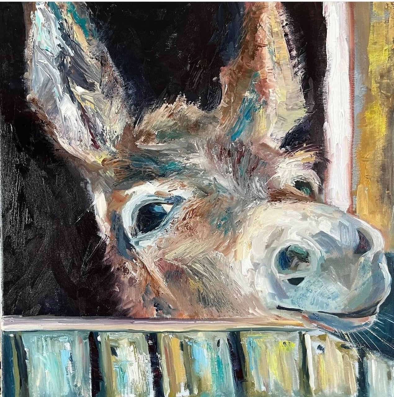 Esel. Aus der Serie „Tiere lügen nicht!“ Öl, 50x50 cm, Keilrahmen