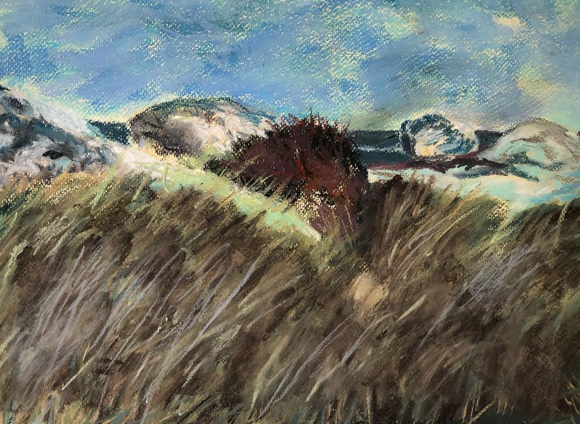 Kleiner Dünenabschnitt bei Carcans Plage. In der Nähe von #bordeaux in Frankreich. Der Herbst ist nun streng eingetroffen. Softpastell, Pastelmat, 30 x 40 cm.
