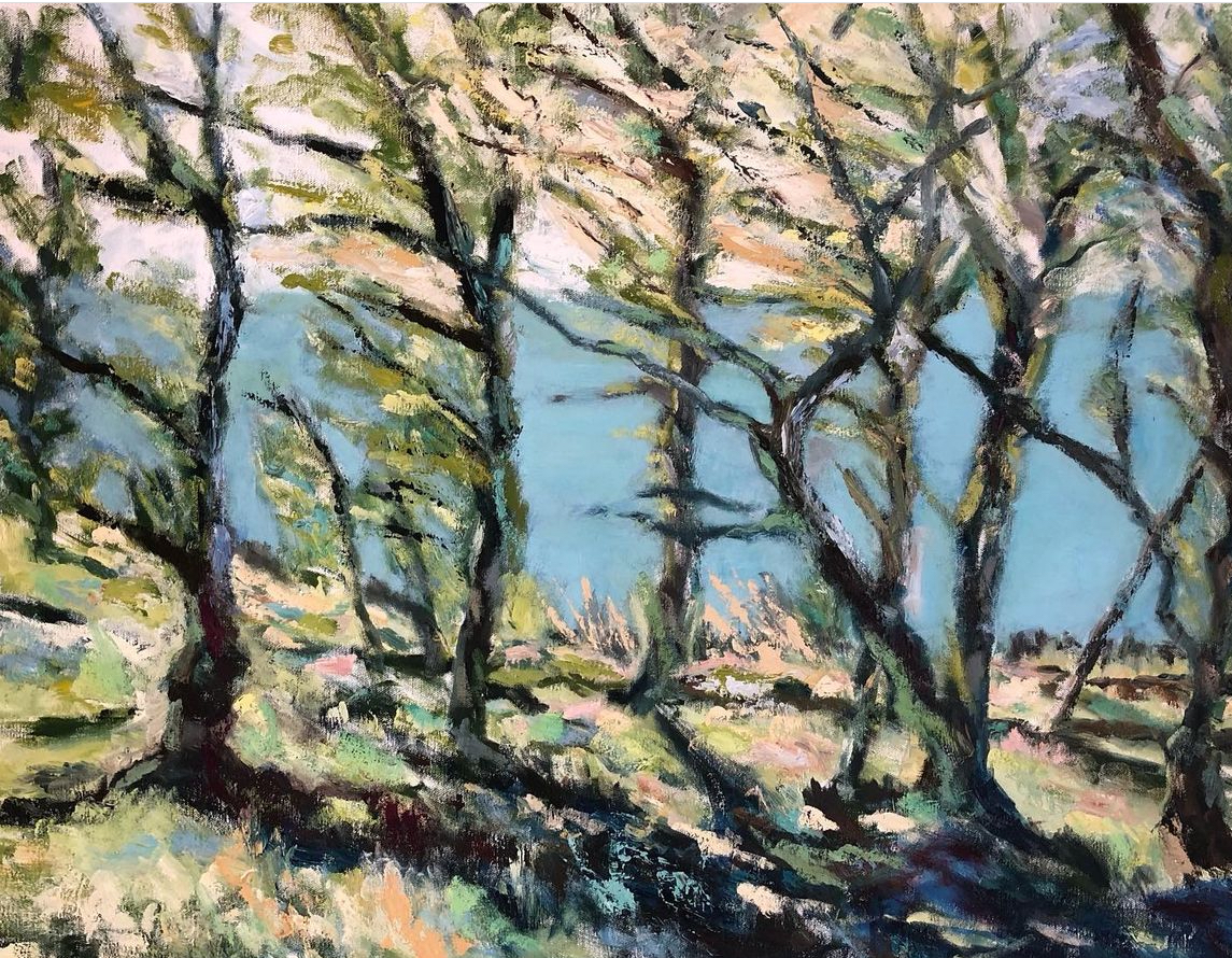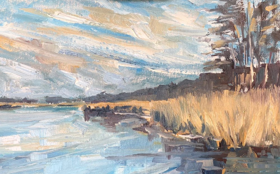 „Teil eines Ostseezyklus. „Am Achterwasser“, Öl, 30x40 cm“.