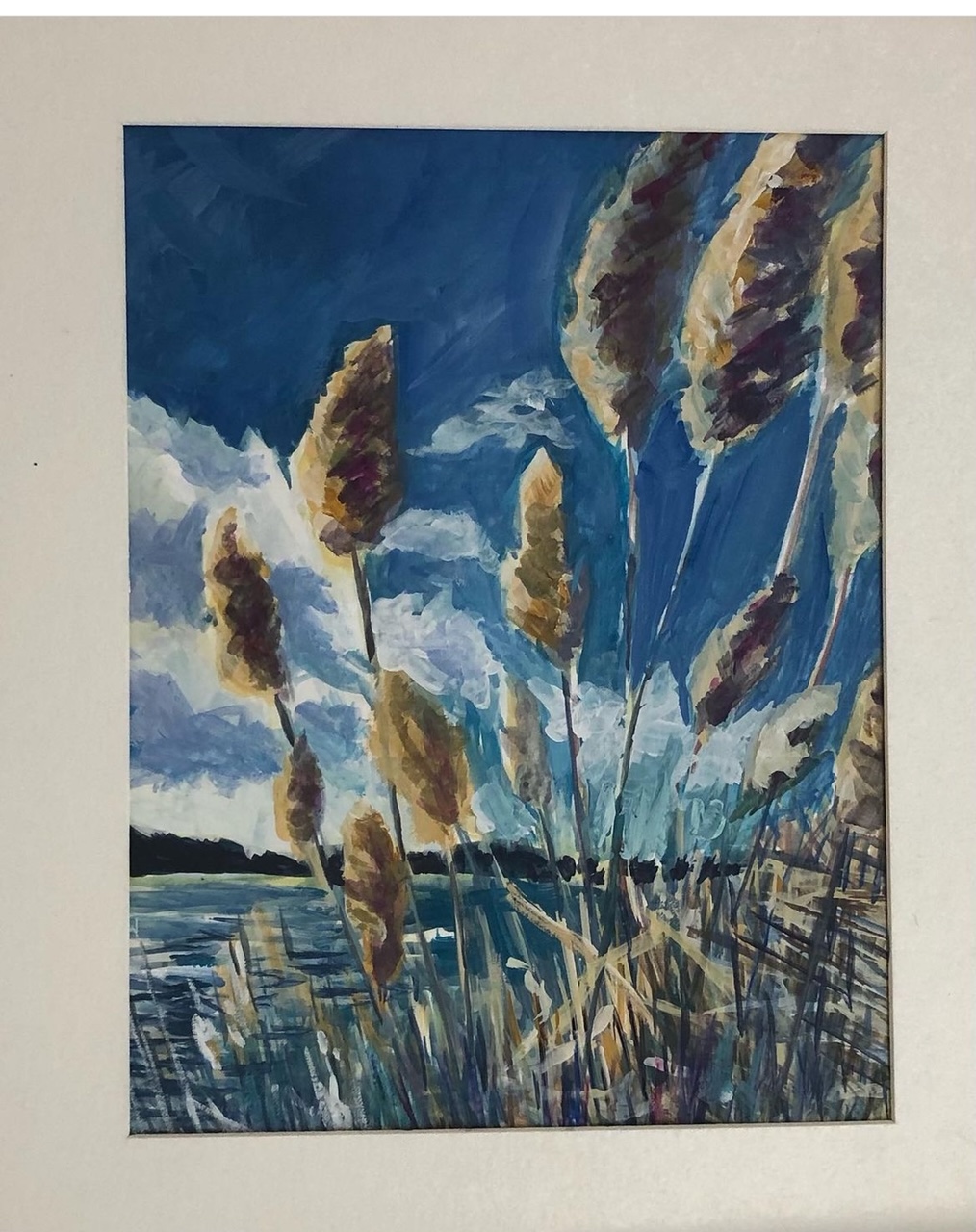 „Schilf am Olchingersee, 30 x 40 cm, Gouache, Acryl-Papier“.
