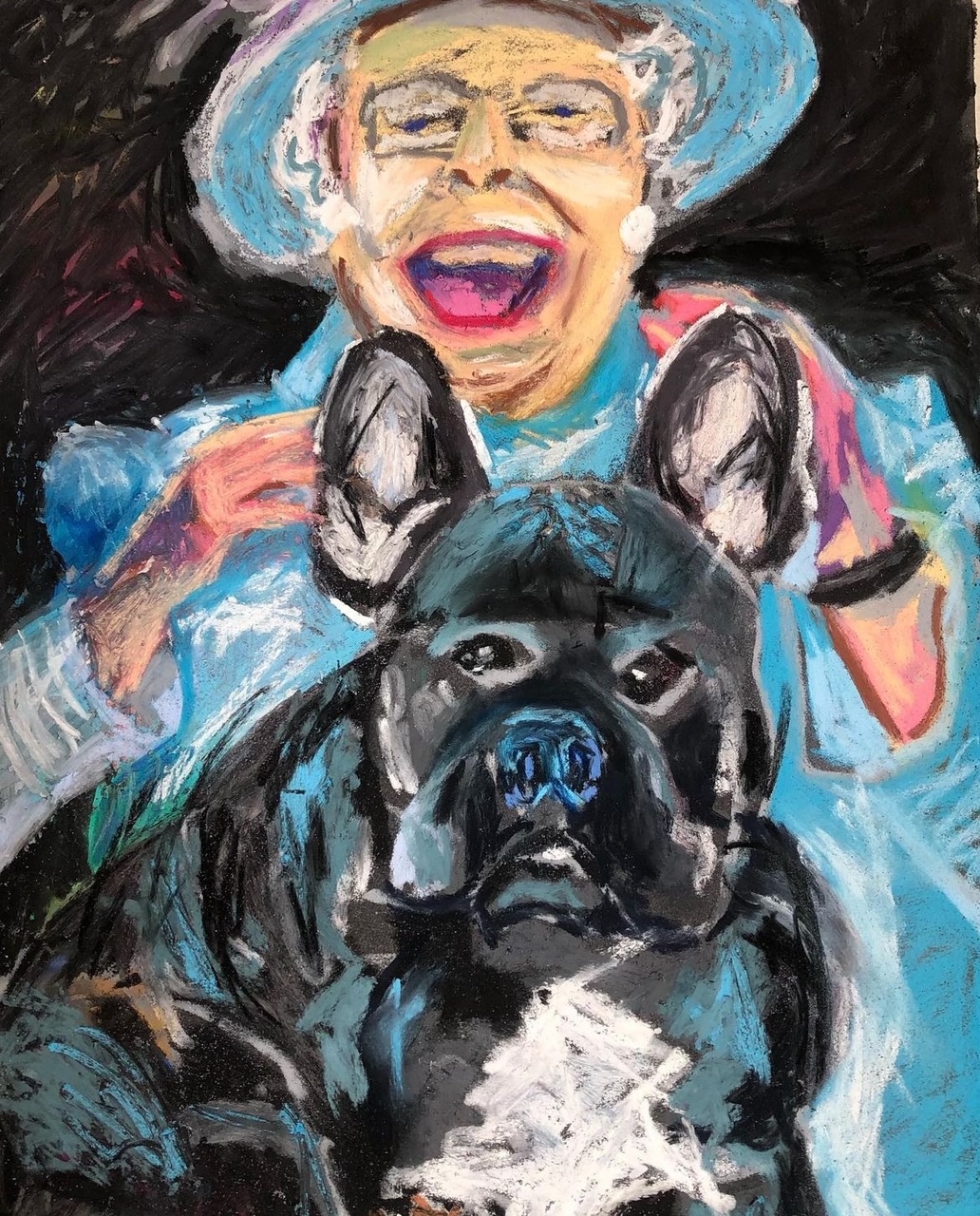 „The very amused Queen with one of her favorite pet at the Highland Games in Scotland. Better days..“.