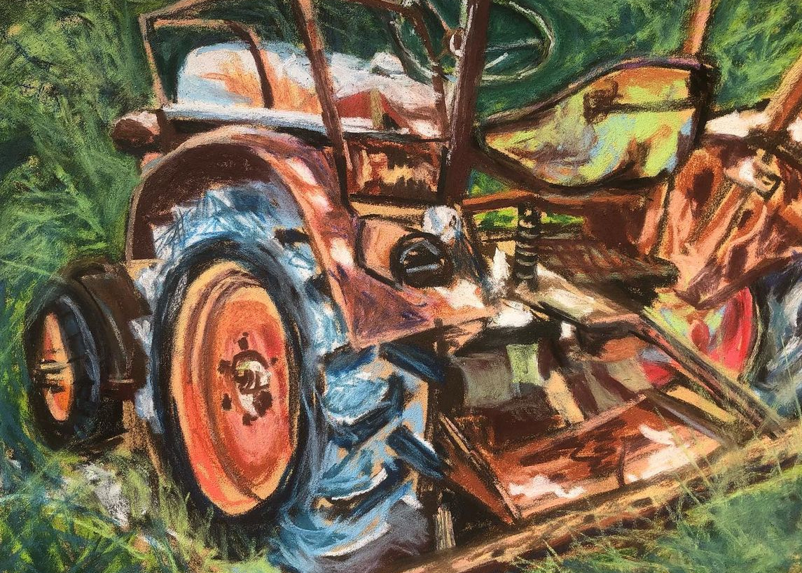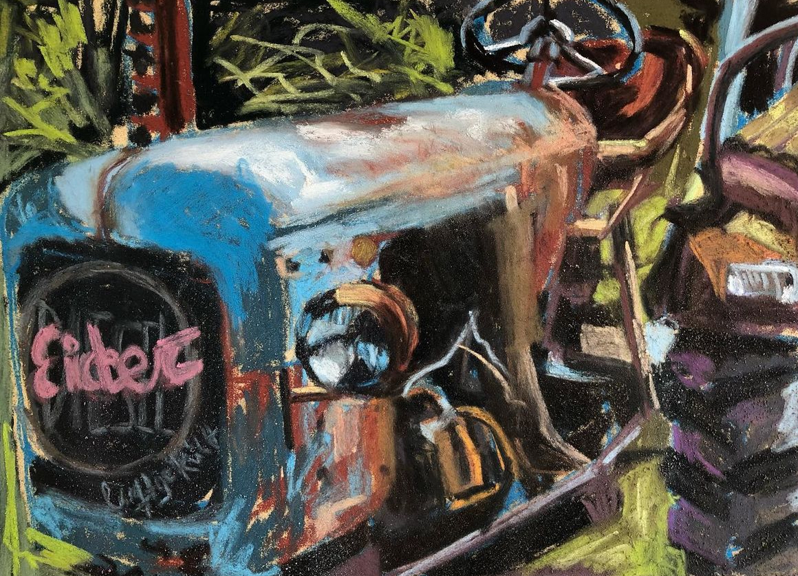 „Eicher Traktor, gesehen in Nordfriesland. Von hinten. Ziemlich rostig! 30x24 cm Softpastell“.