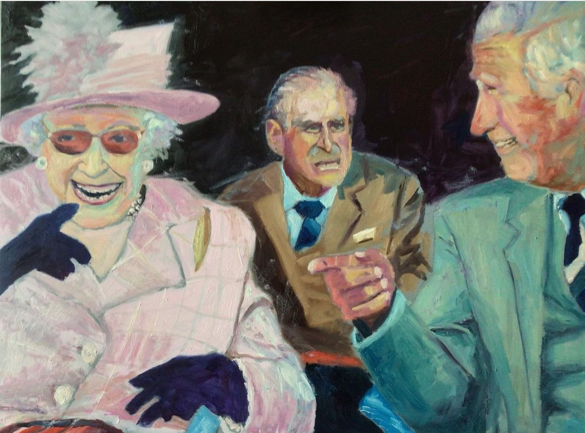 „Aus der Serie „Begeisterte Zuschauer“ eine kleine Szene bei der sich ein Teil der britischen königlichen Familie fürstlich amüsierte (natürlich königlich!). Gesehen bei den Highland Games in Schottland“.