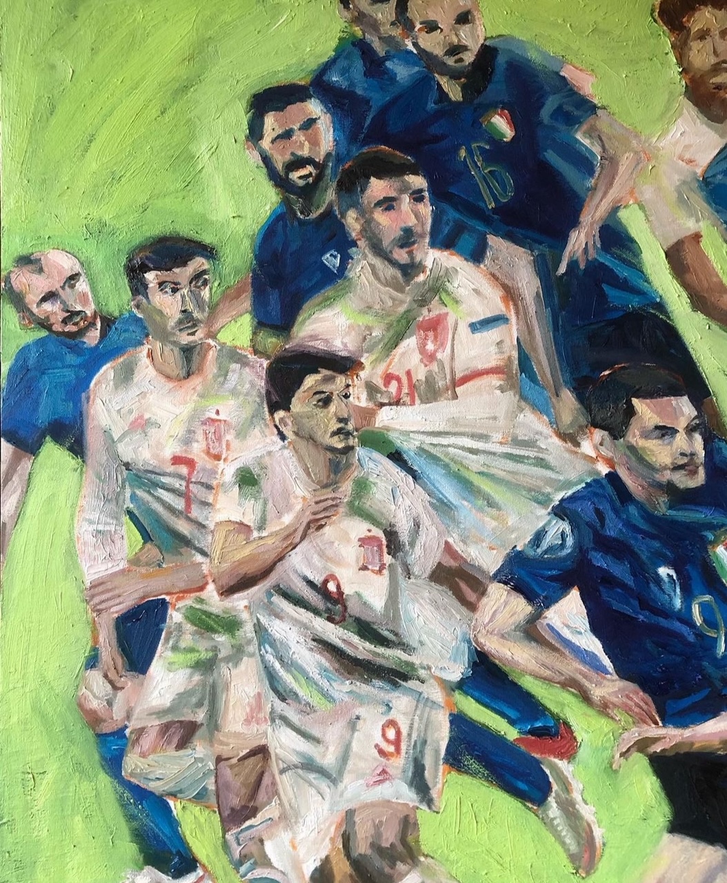 Dies ist eine Szene aus dem Endspiel zur Europameisterschaft 2021. Italien hat das Spiel 3:2 gegen England gewonnen“.