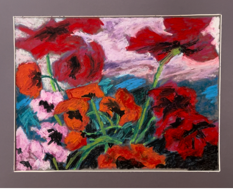 "Großer Mohn (rot, rot, rot)" von Emil Nolde war das Vorbild. Softpastell, Pastelmat, 30 x 40 cm.