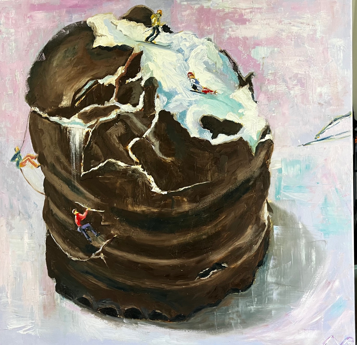 Was man alles mit so etwas machen kann. Wintersport halt! In ca. 90 Tagen ist es wieder so weit (Stand 12.8.) Habe ich irgendwo so ähnlich gesehen. Öl, Keilrahmen, 80 x 80 cm. Das Original ist nicht so gelblich.