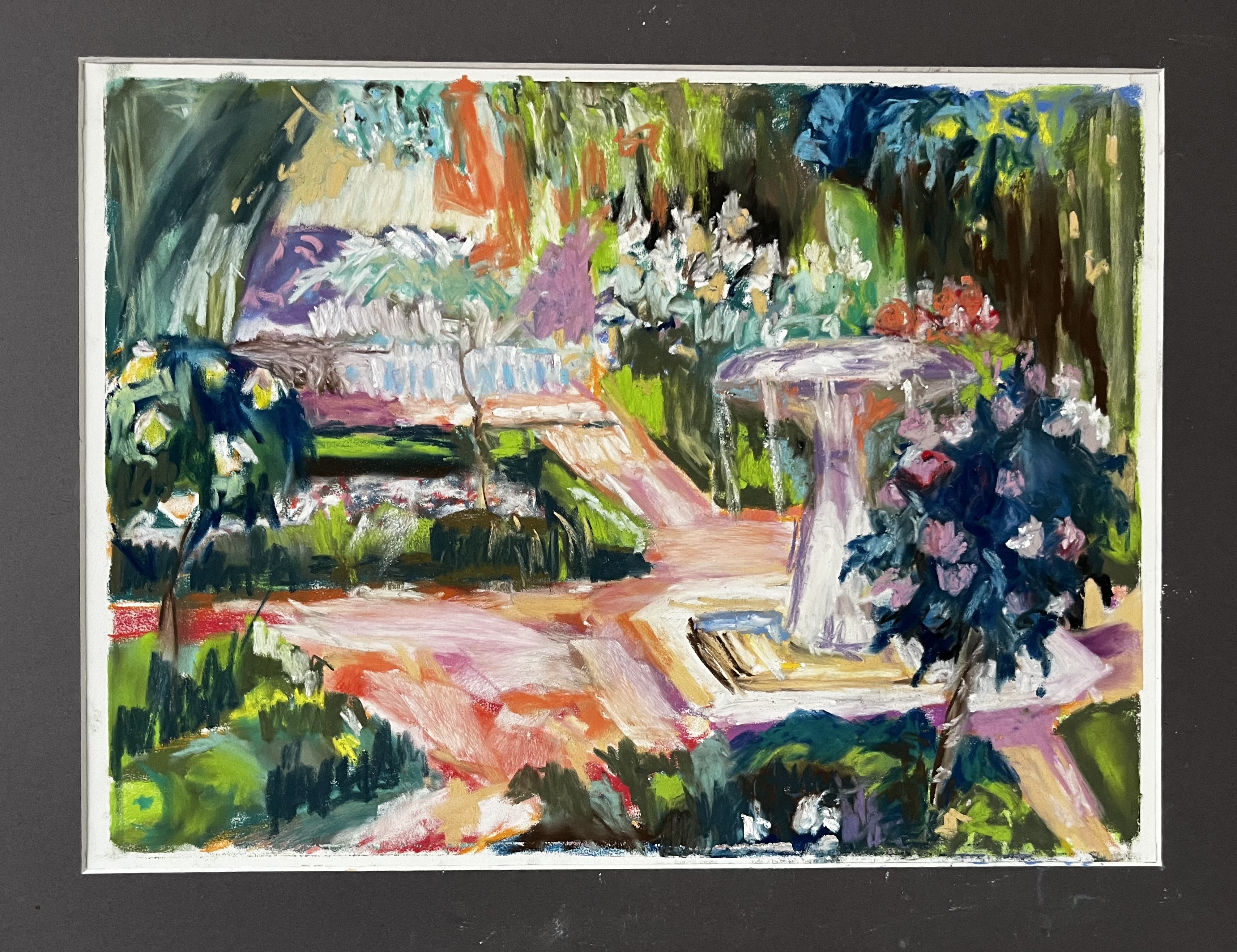 Das ist ein Softpastell-Bild, das einen kleinen Ausschnitt des Gartens von J. Sorolla darstellt. Sorolla hat diesen Ausschnitt in Öl gemalt. J. Sorolla gilt als der Meister des Lichts und das war die eigentliche Herausforderung in diesem Bild. Das Bild hat die Größe von ca. 30 x 40 cm und ist von mir auf Pastelmat gemalt. Es gibt auf YouTube Filme von mir über den Enstehungsprozess dieses Softpastells.