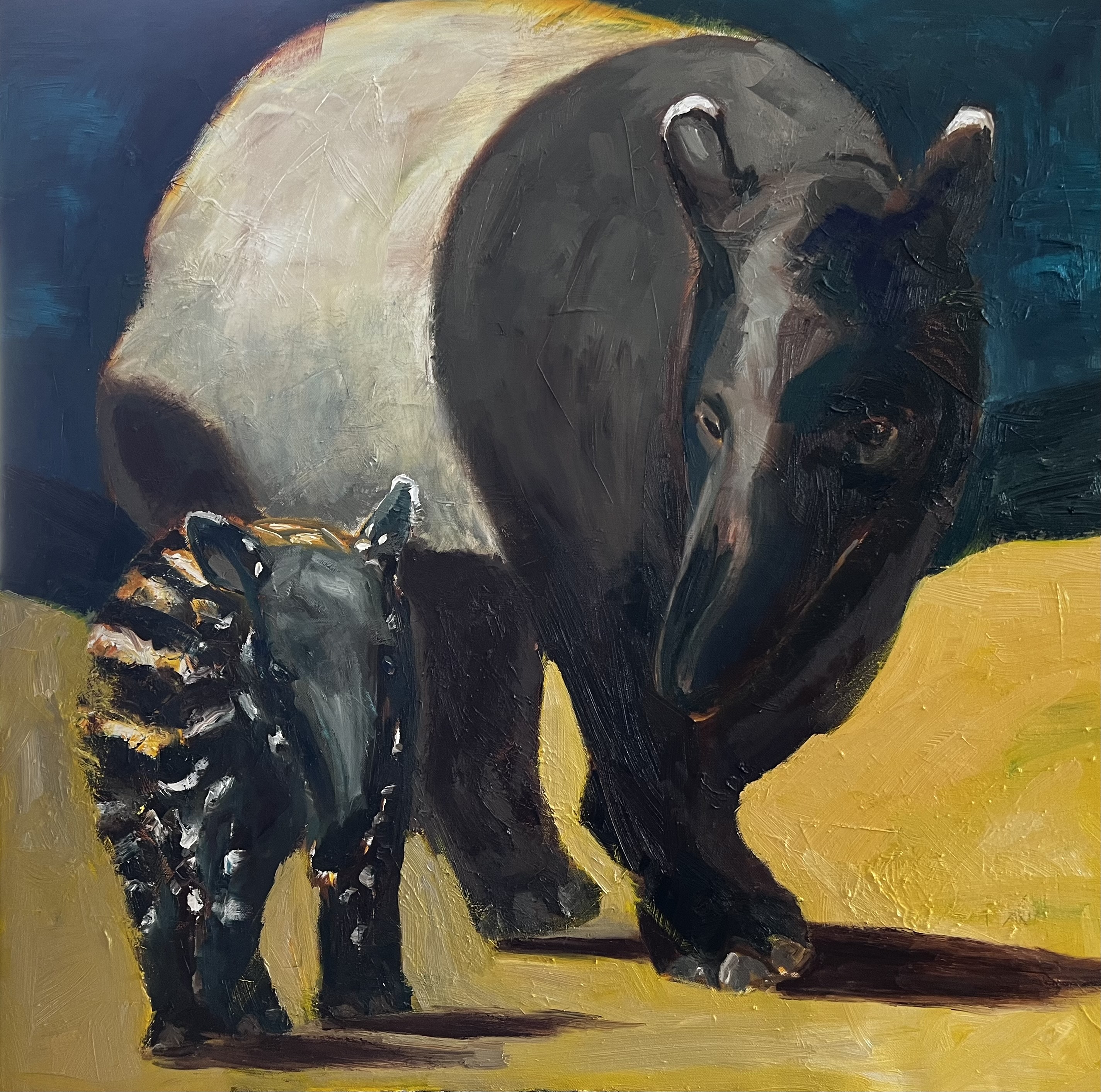 Am 27.4.24 wurde weltweit der Welt-Tapir-Tag gefeiert. Grund genug sich doch einmal an einem Schabracken-Tapir zu versuchen. ÖL, Keilrahmen 70 x 70 cm. Falls das Bild einen Käufer findet, gehen 50% des Kaufpreises an den Zoo Leipzig, zur Futterunterstützung.