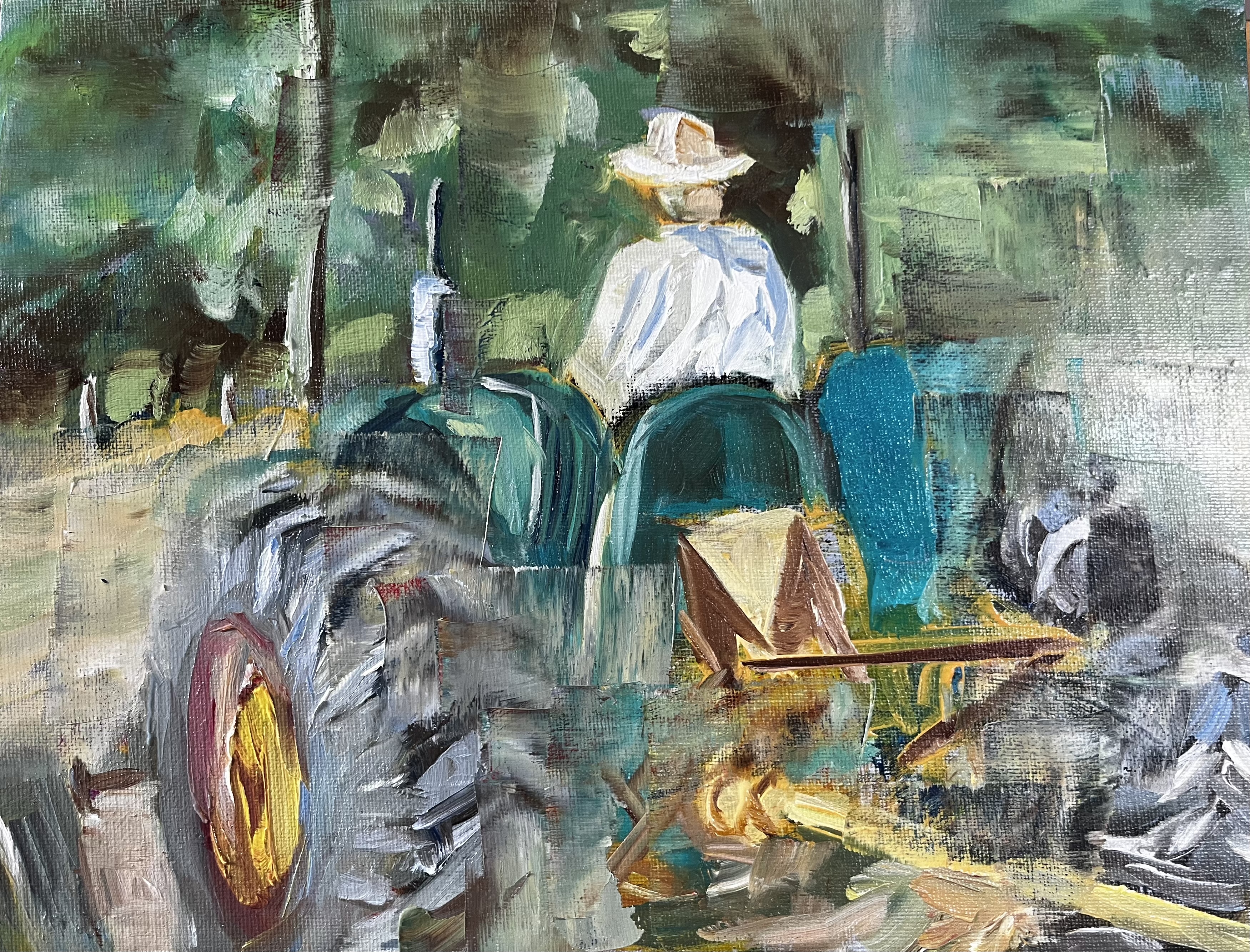 "Power to the Bauer" war mal der Slogan. Öl, Malpappe, 24 x 30 cm. Etwas mit dem so genannten ColorShaper bearbeitet.